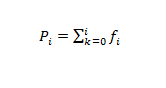 Пусть алфавит передаваемого сообщения состоит из набора символов {x1} (в рассмотренных выше примерах этот алфавит состоял из трех символов {a,b,EOF}, при этом для символа a значение i равно 1, для символа b — i = 2, для EOF — i = 3). Сформируем массив из значений Pi