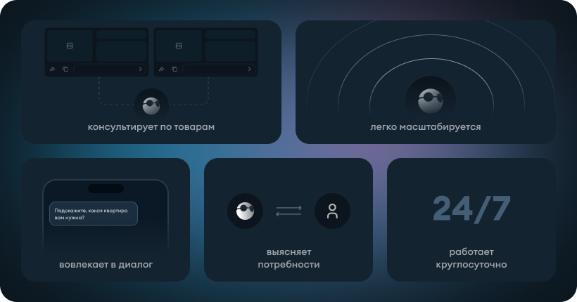 Голосовой ИИ-ассистент меняет логику: он сам вовлекает пользователя в диалог, уточняет потребность, отвечает по сути и при необходимости передаёт дальше уже тёплого клиента. Причём делает это мгновенно, без участия менеджера.