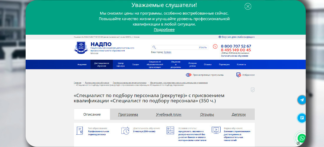 5. «Специалист по подбору персонала (рекрутер)» — НАДПО