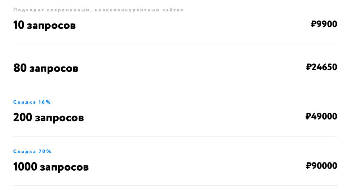 Предлагать продвижение по таким схемам, это как лечить чуму святой водой. Продвижение и тарификация должны строится исходя из бизнеса клиента, типа сайта. Если вам предлагают продвижение интернет-магазина по фиксированному количеству запросов, то перед вами типичный мошенник. По запросам можно продвигать только некоторые корпоративные сайты, где нет огромного кол-ва запросов, а также имиджевые или специфические, типа: такси, пиццерия, квесты и т.п.
