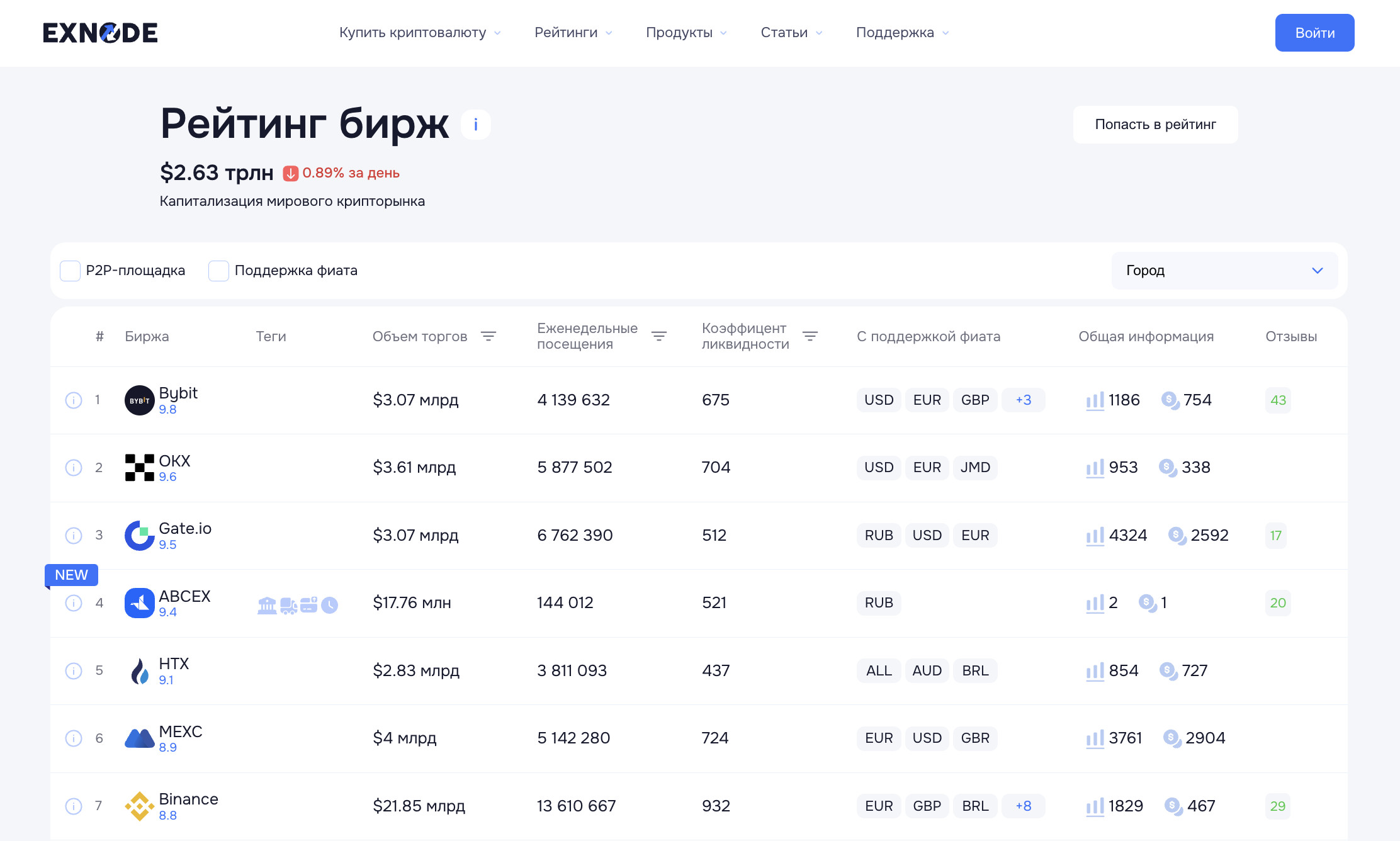 Все платформы, о которых пойдет речь, можно найти на Exnode — сервисе, объединяющем все актуальные криптобиржи и обменники. Здесь можно сравнить условия, комиссии и надежность различных площадок, чтобы выбрать наилучшую криптобиржу для работы в России. В условиях постоянно меняющегося крипторынка выбор подходящей платформы напрямую влияет на удобство, скорость операций и безопасность ваших средств. Наиболее востребованными остаются биржи с развитой P2P-инфраструктурой, высоким уровнем защиты и разнообразием цифровых активов. Ниже приведены три криптобиржи, которые считаются оптимальными для торговли в России в 2025 году. ByBit является одной из наиболее популярных и надежных криптобирж с обширным выбором криптовалют и удобной P2P-торговлей. Высокая скорость обработки транзакций, мощные механизмы защиты и интуитивный интерфейс делают её отличным вариантом как для торговли, так и для хранения активов. Преимущества ByBit: Как начать работу: Gate.io — это универсальная криптобиржа, предлагающая множество инструментов для торговли и инвестиций. Платформа поддерживает как популярные монеты, так и новые перспективные проекты, а также отличается надежностью и безопасностью. Преимущества Gate.io: Как начать работу: OKX стремительно набирает популярность среди российских пользователей благодаря удобству работы и надежной системе защиты. Платформа ориентирована на безопасные сделки между пользователями. Преимущества OKX: Как начать работу: Наиболее надежные криптобиржи предлагают пользователям широкий функционал, включая P2P-торговлю, поддержку рублевых платежей и безопасные механизмы обмена. Выбор подходящей платформы зависит от нескольких факторов: Помимо перечисленных факторов важную роль играет курс криптовалют. Мониторить изменение котировок необходимо для понимания актуального тренда и выбора оптимального момента для осуществления обмена. На такой случай на Exnode существует раздел «Курсы криптовалют», где любой желающий может ознакомиться с графиками изменения курса всех популярных цифровых валют. Выбор криптобиржи — важный шаг, влияющий на удобство, безопасность и эффективность работы с цифровыми активами. В 2025 году крипторынок России продолжает меняться, и лучшие биржи адаптируются под новые реалии. Однако важно не просто найти платформу с низкими комиссиями, а выбрать ту, что предлагает защиту пользователей, удобные платежные методы и высокую ликвидность. Для удобства сравнения условий различных бирж можно воспользоваться Exnode — сервисом, который объединяет все актуальные P2P-площадки и обменники. Здесь вы сможете найти наиболее выгодные курсы и выбрать оптимальную платформу для работы с криптовалютами в России.
