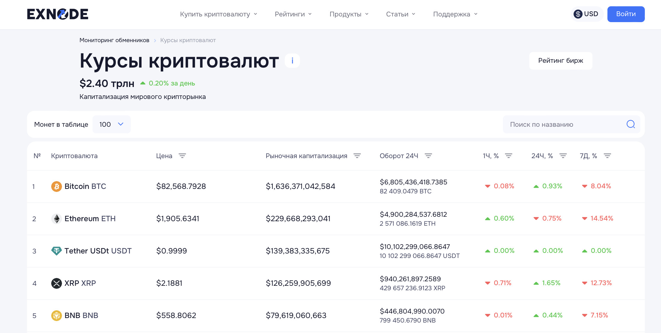 - Текущую рыночную цену на криптовалюту. Советуем для этого воспользоваться разделом «Trading» на Exnode, в нем вы сможете мониторить изменение цен более чем 100 различных криптовалют.