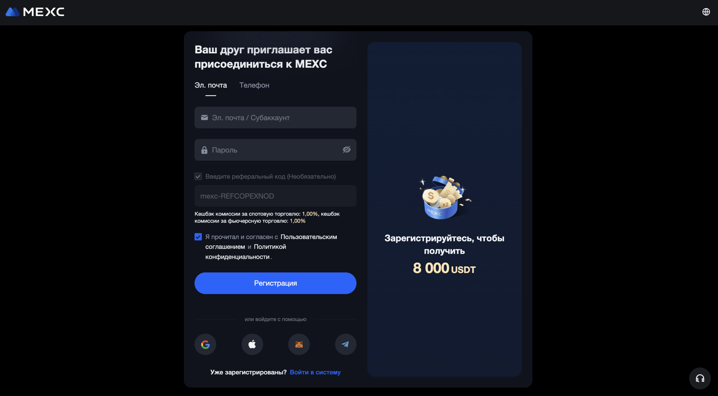 Регистрация на криптобирже MEXC: пошаговая инструкция