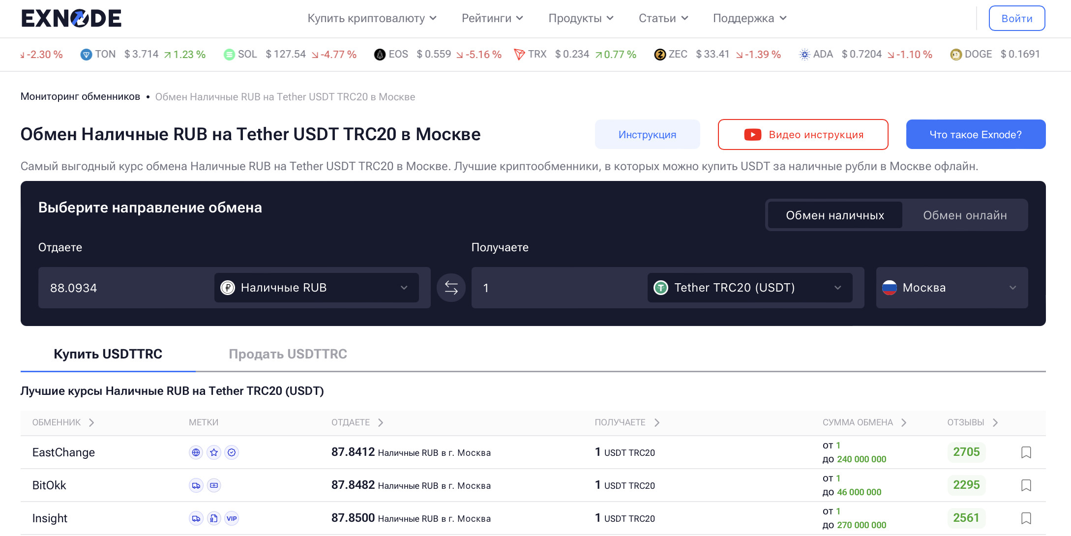 Перед посещением обменника обязательно уточните курс обмена и наличие дополнительных комиссий. Обменники криптовалют в Сити, представленные в этой статье предлагают обмен без дополнительных комиссий, но так делают далеко не все, поэтому будьте внимательны при выборе обменника. Сравните несколько предложений, чтобы выбрать самый выгодный вариант. Также мониторьте рыночные цены криптовалют с помощью Exnode Trading, чтобы понимать когда необходимо купить или продать криптовалюту. Следуя этим рекомендациям, вы сможете провести сделку быстро, безопасно и с минимальными затратами. На основе данных с Exnode представлены лучшие криптообменники Москва-Сити. Эти обменники предлагают выгодные курсы, высокий уровень безопасности и удобство операций. EastChange славится прозрачными условиями обмена и высокой надежностью. Это идеальный выбор для тех, кто ищет проверенный обменник криптовалют в Москве-Сити. BitOkk предлагает удобные условия для обмена крипты в Moscow City, включая быструю обработку заявок и отсутствие скрытых комиссий. Insight выделяется своими премиальными услугами для крупных клиентов. Этот обменник крипты в Сити подходит для безопасного обмена больших сумм. Этот сервис дополняет список лучших обменников и подходит тем, кто ищет комфортные условия обмена. KriptoObmennik помогает купить крипту в Москве Сити с минимальными рисками и без задержек. Каждый из этих криптообменников Москоу Сити предлагает удобные и выгодные условия для обмена наличных на криптовалюту. Сравнивайте курсы, читайте отзывы и выбирайте наиболее подходящий вариант. Обмен криптовалюты в Москва-Сити становится простым и удобным процессом, если следовать пошаговому алгоритму. Ниже приведена подробная инструкция, которая поможет вам безопасно и выгодно провести обмен через надежные сервисы. 1. Заходите на сайт мониторинга Для начала перейдите на сайт Exnode, где вы найдете актуальный список лучших обменников: На этом этапе вы сможете увидеть рейтинги, отзывы и доступные лимиты для обмена крипты в Сити. 2. Выберите подходящий обменник После изучения предложений выберите наиболее подходящий криптообменник: 3. Уточните детали с менеджером После создания заявки менеджер выбранного обменника криптовалют свяжется с вами: Это важный шаг, который обеспечит безопасность и удобство обмена крипты в Москва-Сити. 4. Посетите офис В назначенное время отправляйтесь в офис выбранного крипто обменника Сити: 5. Совершите транзакцию В офисе вам останется только завершить процесс обмена криптовалюты на наличные: Этот процесс занимает минимальное время, а весь обмен проходит в комфортных и безопасных условиях. Криптообменники в Москва-Сити — это удобный, безопасный и быстрый способ обменять криптовалюту на наличные или провести другие операции с цифровыми активами. Благодаря платформе Exnode вы можете найти надежные обменники, предлагающие лучшие курсы и условия. EastChange, BitOkk, Insight и KriptoObmennik — это лидеры среди криптообменников Сити, которые выделяются своей прозрачностью, безопасностью и высоким уровнем сервиса.