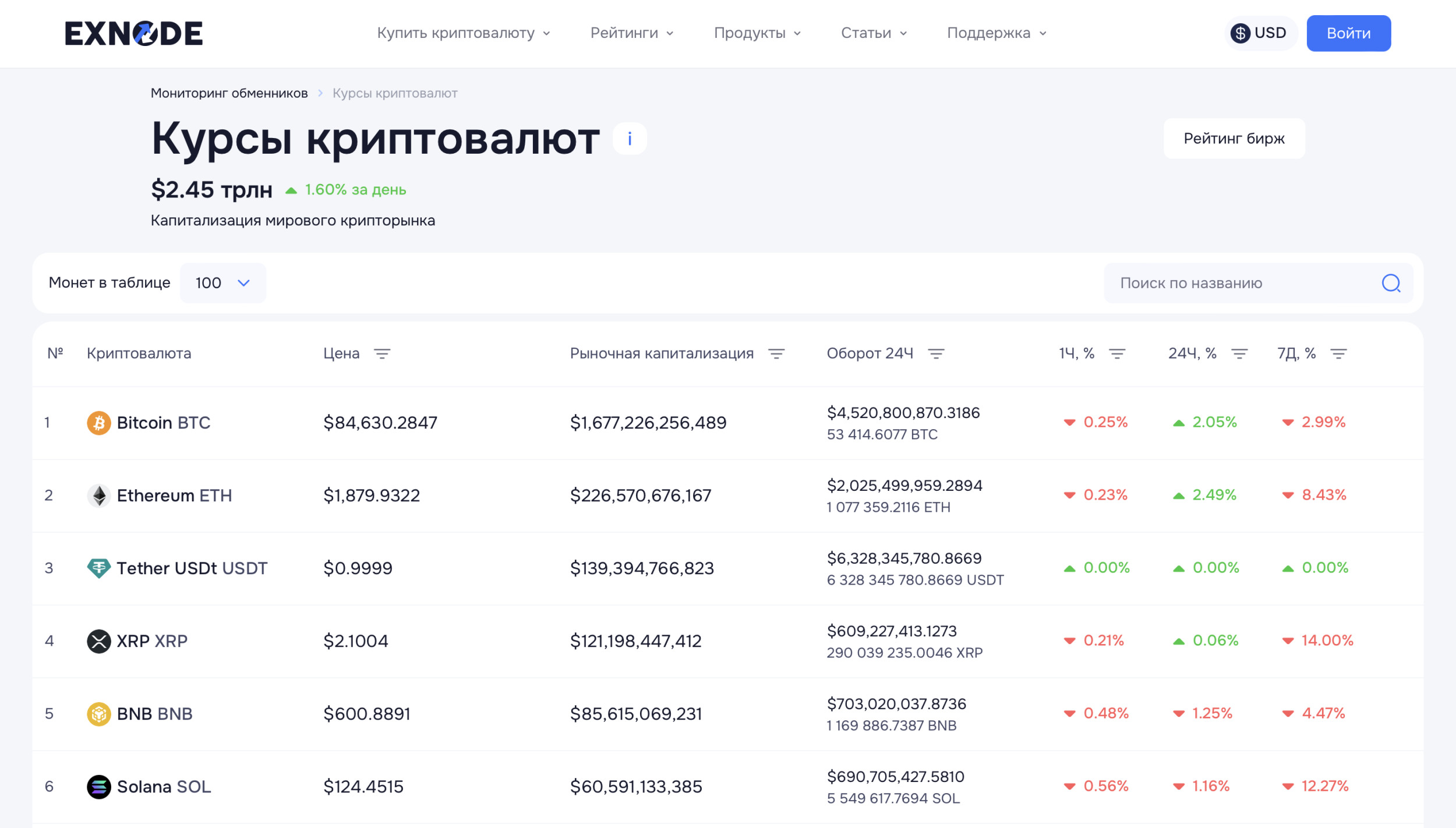 Если вы ищете лучшие обменники крипты с выгодным курсом и надежной репутацией, обратитесь к мониторингу Exnode — он помогает сравнить курсы, условия и выбрать действительно проверенный обменник крипты на рубли. Мы составили топ обменников крипты, в который вошли сервисы, заслужившие доверие пользователей благодаря своей стабильной работе, скорости сделок и прозрачным условиям.