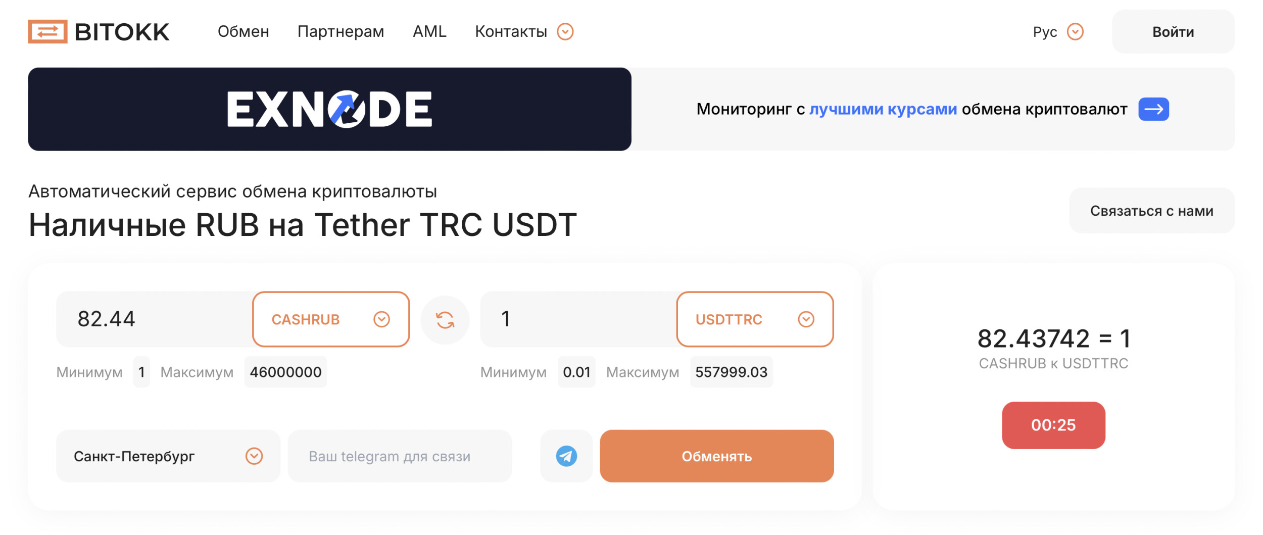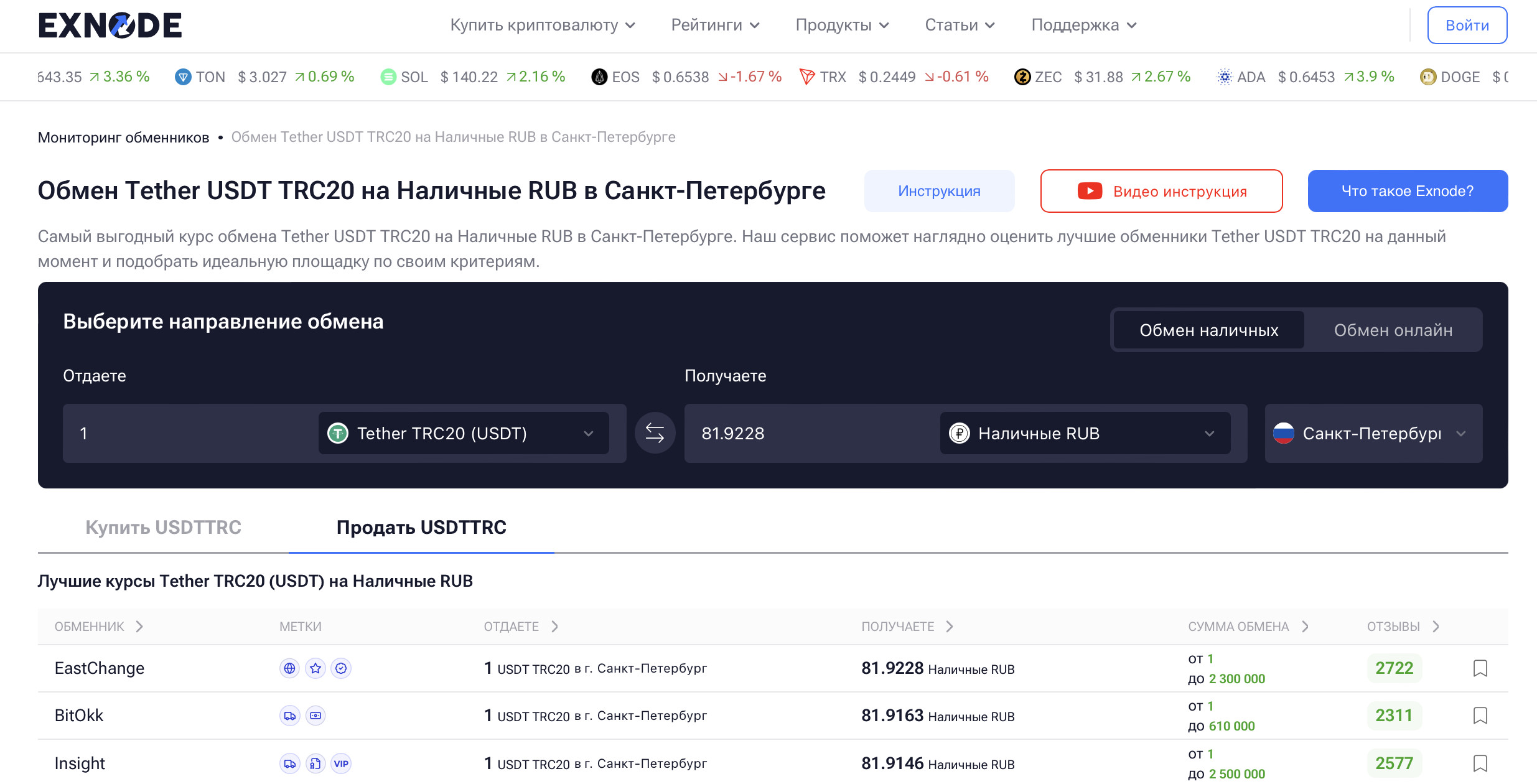 Таким образом, личный визит в качественный обменник криптовалюты СПб — это не только надёжно, но и действительно выгодно. Главное — использовать проверенные сервисы, например, те, что представлены на Exnode. Выбирая криптообменник в Санкт-Петербурге, важно не полагаться только на рекламу или советы знакомых. От правильного выбора обменника зависит не только курс, но и ваша безопасность, а также юридическая чистота сделки. Особенно это актуально в 2025 году, когда рынок становится всё более насыщенным, но и более рискованным. ✅ 1. Прозрачность условий Хороший крипто обменник СПБ всегда публикует: ✅ 2. Безопасность и конфиденциальность Обратите внимание на: ✅ 3. Курсы и выгодность сделок Сравнивая обменники, обязательно обращайте внимание на выгодность курса. Даже разница в 1–2% может существенно повлиять на итоговую сумму при больших объемах.Чтобы точно определить, насколько курс соответствует рыночному, рекомендуем использовать Exnode Trading — там отображаются актуальные курсы более 100 криптовалю тв реальном времени. ✅ 5. Репутация и отзывы Поищите реальные отзывы клиентов, желательно — на независимых платформах и форумах. Хорошие проверенные обменники крипты в СПБ обычно имеют сотни положительных оценок, быструю поддержку и прозрачную историю работы. Если вы впервые планируете провести обмен криптовалюты на наличные СПБ, важно понимать, как именно устроен процесс. Оффлайн обменники криптовалют в Санкт-Петербурге обеспечивают безопасные и оперативные сделки, но требуют соблюдения чёткого порядка действий. Ниже — пошаговая инструкция, которая поможет вам провести обмен быстро и без лишних сложностей. 🔹 Шаг 1: Выбор обменника с помощью мониторинговых сайтов Чтобы подобрать надёжный обменник крипты в СПБ, начните с агрегаторов обменников. Один из лучших инструментов — Exnode, где собраны оффлайн обменники криптовалют в Санкт-Петербурге с реальными курсами, рейтингами и отзывами клиентов. Это позволит выбрать не только безопасный, но и выгодный вариант. 🔹 Шаг 2: Оформление заявки на сайте выбранного криптообменника Перейдите на сайт понравившегося обменника, например, и заполните заявку. Обычно потребуется указать: Это необходимо, чтобы менеджер оперативно вышел с вами на связь для подтверждения деталей. 🔹 Шаг 3: Связь с менеджером Представитель обменника напишет вам в Telegram, чтобы: 🔹 Шаг 4: Визит в офис криптообменника В назначенное время вы приходите в офис. Сделка проходит в комфортной и безопасной обстановке. Вы переводите криптовалюту на предоставленный кошелёк обменника. После подтверждения транзакции менеджер выдаёт вам наличные рубли. 🔹 Шаг 5: Проверка поступления средств и завершение обмена Менеджер проверяет поступление криптовалюты на кошелёк. Как только всё подтверждено — вы получаете деньги, и сделка считается завершённой.Весь процесс обычно занимает от 10 до 15 минут, в зависимости от загруженности сети и выбранной криптовалюты. Мы рассмотрели лучшие криптообменники в СПб — такие как EastChange, BitOkk, Insight и KriptoObmennik. Эти компании заслуженно входят в ТОП, так как доказали свою надёжность, работают без скрытых комиссий, предоставляют прозрачные курсы и не требуют лишней верификации. Чтобы избежать ошибок и не потерять деньги при выборе обменника, рекомендуем пользоваться мониторингом Exnode. Это удобный инструмент для 