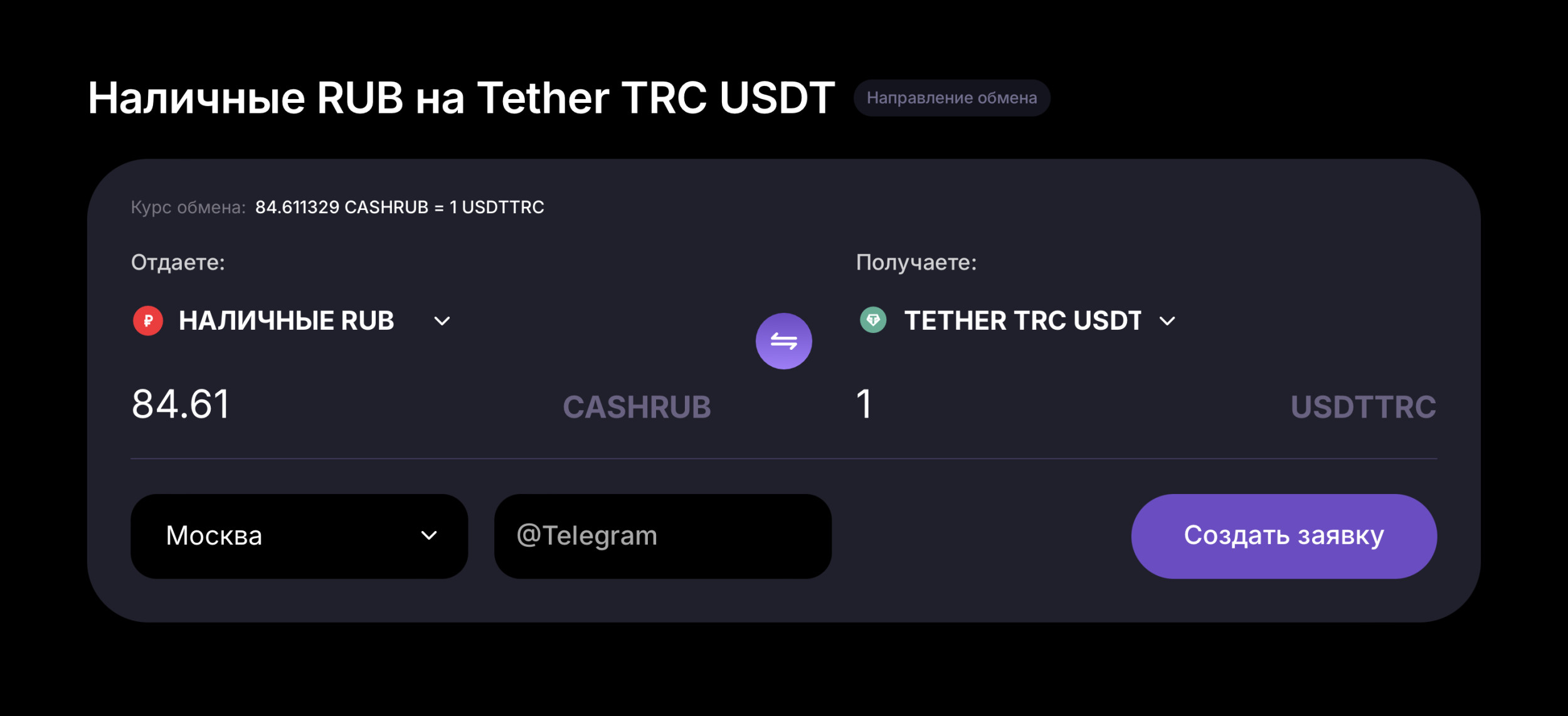 - Работает для любых направлений обмена, включая покупку Tether USDT TRC20 за наличные доллары.
