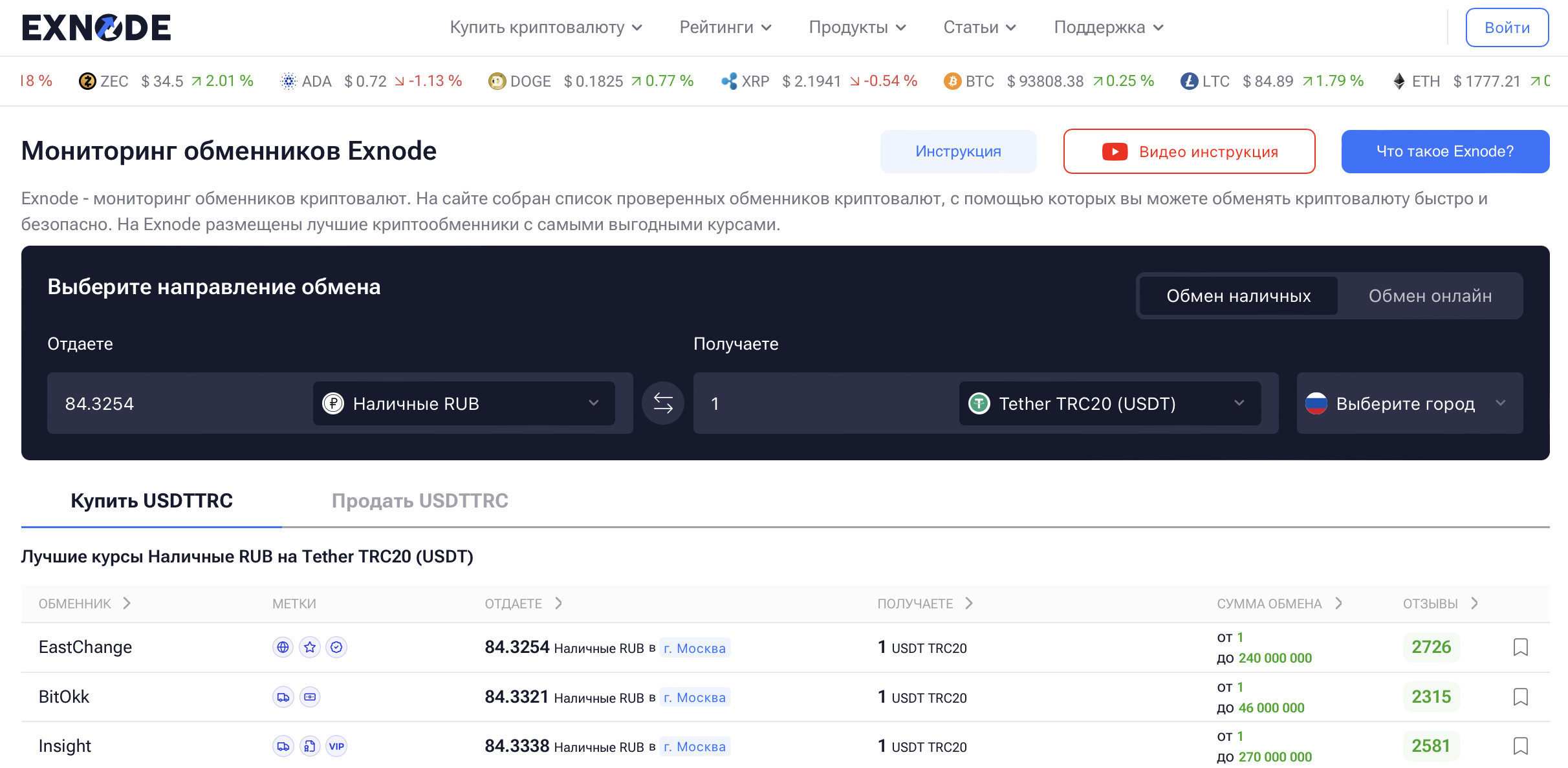 Первый и важнейший этап — выбор надежного обменного пункта. Лучше всего воспользоваться специализированным мониторингом, таким как Exnode — это удобный сервис, где собраны все актуальные курсы, лимиты и рейтинг криптообменников. На Exnode можно отфильтровать только те обменники, которые работают с наличными в вашем городе и позволяют купить USDT за наличные рубли или доллары. 📝 Шаг 2: Оформление заявки на сайте выбранного криптообменника После выбора обменника перейдите на его сайт и создайте заявку. Обычно в форме нужно указать: Это обязательный этап, тоже самое необходимо сделать, если вы хотите купить Tether USDT TRC20 за наличные доллары — все уточняется через предварительную заявку. 💬 Шаг 3: Связь с менеджером После оформления заявки с вами свяжется представитель обменника через Telegram. Он подтвердит актуальный курс, предложит удобное время и сообщит точный адрес офиса. 🏢 Шаг 4: Визит в офис криптообменника В назначенное время вы приезжаете в офис обменника. С собой необходимо взять: Вы передаёте деньги сотруднику, после чего он переводит вам USDT. Это самый безопасный способ купить USDT за наличные рубли без посредников и ожидания подтверждений. 🔐 Шаг 5: Проверка поступления средств и завершение обмена Последний шаг — убедиться, что средства поступили на ваш кошелёк. Обычно это занимает от нескольких секунд до пары минут, особенно при использовании сети TRON (TRC-20). Как только перевод подтвержден — сделка считается завершённой. Таким образом, вы можете купить USDT за наличные в Москве без комиссии, рисков и лишней бюрократии. Используйте проверенные обменники, выбирайте подходящее время и заранее уточняйте условия. Если вы планируете купить USDT за наличные, особенно на крупную сумму, крайне важно выбрать надежный криптообменник. Не все обменные пункты одинаково безопасны, поэтому при выборе партнёра для сделки стоит учитывать ряд ключевых критериев. Вот на что следует обратить внимание: 🔍 1. Репутация и отзывы клиентов Перед тем как купить USDT за наличные рубли, обязательно изучите отзывы о выбранном обменнике. Репутация — один из главных индикаторов надёжности. Рекомендуем смотреть отзывы на независимых платформах и использовать мониторинги, где представлены только проверенные обменные пункты. 💸 2. Прозрачные условия и отсутствие скрытых комиссий Надежный обменник всегда заранее показывает вам точный курс и сумму, которую вы получите. Если вы хотите купить Tether USDT TRC20 за наличные доллары, обратите внимание, не включена ли комиссия в курс, и как она отображается. Лучшие обменники честно указывают конечную сумму обмена без скрытых комиссий на этапе заявки. 📍 3. Наличие офиса и возможность личной встречи Для тех, кто хочет купить USDT за наличные в Москве, важна возможность приехать в офис и провести сделку лично. Надежные обменники работают в бизнес-центрах и имеют физические адреса. Это снижает риски мошенничества и обеспечивает конфиденциальность. 🛡 4. Безопасность сделки Обратите внимание на следующие моменты: Если вы хотите купить USDT за наличные рубли в Москве, безопасность сделки должна быть приоритетом. 🕐 5. Скорость обработки заявки Надёжные обменники проводят операции за 10–15 минут. Уточняйте, сколько времени займёт оформление пропуска, обработка заявки и перевод USDT на ваш кошелёк. 📲 6. Поддержка и оперативная связь После пода