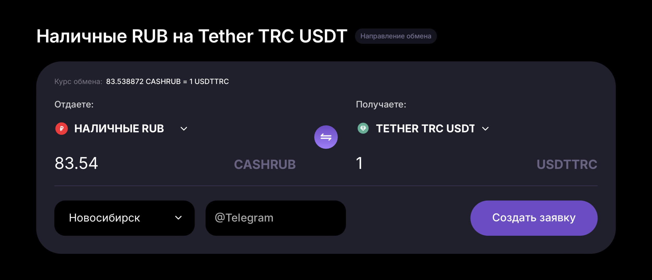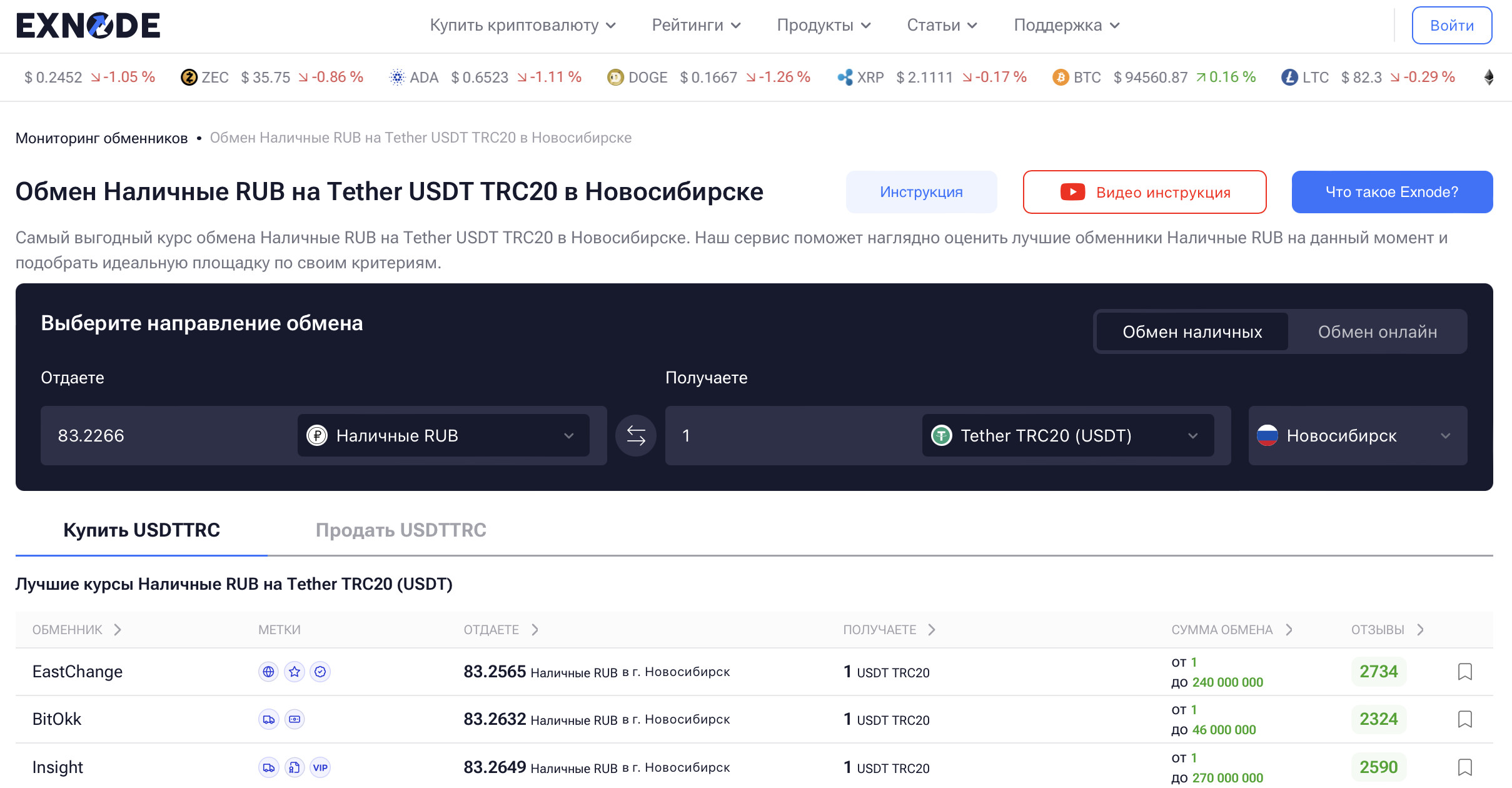 Первым делом нужно подобрать надёжный обменник крипты. Для этого используйте специализированные сервисы — например, Exnode. Он помогает найти лучший криптообменник по курсу, комиссии и отзывам. Благодаря фильтрам и рейтингу, вы за несколько минут выберете безопасную платформу для обмена криптовалюты в Новосибирске. 🔹 Шаг 2: Оформление заявки на сайте После выбора обменника, перейдите на его сайт. Укажите направление обмена — например, USDT → RUB, сумму и контактные данные. Обычно нужен Telegram-ник — менеджер криптообменника свяжется с вами напрямую. Это обязательный этап, чтобы подтвердить заявку и согласовать условия обмена крипты. 🔹 Шаг 3: Связь с менеджером Представитель обменника свяжется с вами в Telegram. Он уточнит:— сумму,— курс,— адрес офиса криптообменника в Новосибирске,— и предложит удобное время для сделки. Вы можете задать любые вопросы — грамотный менеджер подробно объяснит, как пройдёт обмен криптовалюты. 🔹 Шаг 4: Визит в офис криптообменника В назначенное время приходите по адресу, указанному менеджером. С собой нужно иметь смартфон с доступом к вашему криптокошельку. Вы переводите USDT на кошелек обменника, после чего получаете наличные рубли. Всё происходит быстро — обычно не дольше 10–15 минут. 🔹 Шаг 5: Проверка и завершение сделки После завершения передачи средств обязательно проверьте, что наличные соответствуют сумме сделки. Это финальный этап — вы успешно завершили обмен криптовалюты в Новосибирске без рисков и комиссий. Несмотря на популярность офлайн-обменников, многие по-прежнему рассматривают онлайн-платформы — криптобиржи и p2p-сервисы — как вариант для обмена криптовалюты Новосибирск. Однако у этих способов есть существенные недостатки, особенно если вы хотите сохранить анонимность и не платить лишние комиссии. 🔹 Биржи: регистрация, верификация и комиссии На первый взгляд криптобиржи кажутся удобными: большой выбор пар, автоматизация и быстрые сделки. Но есть нюанс — любая уважающая себя платформа требует прохождения верификации KYC. Это значит, что анонимность полностью отсутствует: вы обязаны предоставить паспорт, ИНН и даже селфи. Кроме того, комиссии могут достигать 1–3% от сделки: торговые, за ввод и вывод средств. Добавим к этому волатильность курса и задержки в выводе фиатных денег — и получим далеко не самый выгодный способ для жителя Новосибирска. 🔹 P2P-сервисы: риски и сложность На P2P-платформах вы якобы напрямую связываетесь с продавцом или покупателем крипты. Но на практике большинство таких сделок требует использования внутреннего эскроу-сервиса, а также обязательной регистрации. И снова — никакой анонимности, особенно если сумма крупная. Риски при этом возрастают: велика вероятность нарваться на мошенника, особенно если вы не разбираетесь в рейтингах и нюансах платформ. Кроме того, при сделках могут быть скрытые комиссии со стороны самой площадки. 🔹 Почему офлайн-обменники выигрывают? Если вы хотите провести обмен криптовалюты в Новосибирске быстро, безопасно и без потери конфиденциальности — лучше обратиться в офис. Офлайн-криптообменники Новосибирска не требуют документов (только для оформления пропуска в офис), и не берут комиссию. Кроме того, вы получаете наличные сразу после сделки — что невозможно в случае с биржами. Поэтому для большинства жителей Новосибирска обмен кри
