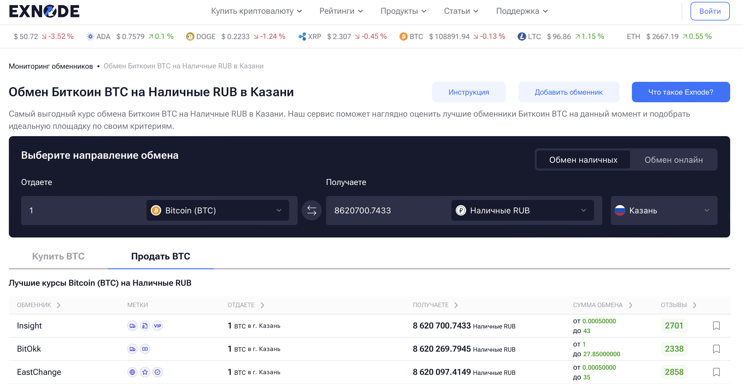 Хорошая новость: в Казани есть проверенные точки, где можно провести обмен криптовалюты — будь то USDT, Bitcoin или Ethereum — с прозрачными условиями. А чтобы не выбирать вслепую, стоит заглянуть на Exnode — мониторинг обменников криптовалют, где собраны только проверенные площадки с реальными отзывами и курсами.