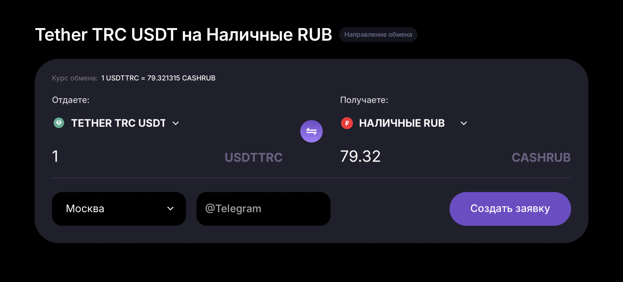 Если вы ищете, где можно обменять USDT быстро и без рисков — этот вариант стоит рассмотреть первым. Надёжный обменный сервис с удобной системой записи и понятным интерфейсом. BitOkk ориентирован на комфорт сделок и предлагает гибкие условия. Плюсы: — стабильная работа без технических сбоев— возможность обменять USDT в разных городах— подтверждённая репутация на мониторинговых сервисах Один из самых популярных сервисов на рынке. EastChange предлагает отличные курсы и стабильную работу без скрытых комиссий. Пользователи особенно ценят простую процедуру оформления заявки и высокую скорость обработки. Плюсы: — выгодные курсы— анонимность операций— поддержка всех популярных направлений, включая TRC20 Хорошо зарекомендовавший себя обменный сервис, особенно для крупных сумм. Здесь ценят индивидуальный подход и гибкие условия. Плюсы: — нет лимитов и комиссий— персональный менеджер— высокая ликвидность и уверенность в крупных сделках Если вы ищете, как обменять USDT на рубли быстро, безопасно и без лишних комиссий — криптообменник будет лучшим решением. Ниже приведена подробная пошаговая инструкция, как это сделать с минимальными рисками. Шаг 1: Поиск надежного обменника через мониторинг Для начала определитесь, где обменять USDT на рубли по выгодному курсу. Воспользуйтесь специализированным мониторингом — например, Exnode, где можно сравнить условия, отзывы и рейтинг обменников. Это позволит избежать сомнительных сервисов и найти обменник, готовый оперативно провести сделку. Шаг 2: Оформление заявки на сайте Выберите обменник и оставьте заявку на сайте: укажите направление USDT → RUB, желаемую сумму, ваш Telegram-никнейм и город. Шаг 3: Подтверждение условий и общение с менеджером Менеджер связывается с вами через Telegram или другой мессенджер, чтобы уточнить курс, адрес обмена и время встречи. Если вы хотите обменять USDT TRC20, обязательно проверьте, поддерживает ли обменник этот стандарт сети. Шаг 4: Обмен в офисе В назначенное время приезжаете в офис. Сотрудник проверяет данные, после чего вы переводите сумму в USDT на указанный криптокошелёк. Взамен вам выдают наличные рубли. Шаг 5: Завершение сделки После того как вы получили рубли и подтвердили перевод, сделка считается завершённой. Обязательно сохраните контакт обменника — в будущем это упростит повторные операции. Такой способ — один из самых надёжных и быстрых, особенно если вы хотите обменять USDT на наличные без рисков. В 2025 году самым эффективным и надёжным вариантом для тех, кто хочет обменять USDT на наличные, остаются специализированные криптообменники. Ниже — основные причины, почему именно они считаются лучшим решением. 1. Анонимность сделок Криптообменники не требуют прохождения верификации и предоставления паспортных данных. Это позволяет обменять USDT в обменнике без раскрытия личности и сохранить полную конфиденциальность. 2. Отсутствие комиссий Обменные сервисы предлагают обменять USDT на наличные рубли по прозрачному курсу курсу без дополнительных комиссий. Вы заранее знаете точную сумму, которую получите, без скрытых затрат. 3. Скорость Операции проходят быстро — от оформления заявки до получения средств проходит всего 10–15 минут. Не нужно ждать подтверждений банков или долго искать подходящие предложения, как это бывает на P2P-площадках. 4. Прозрачность условий Вы заранее согласо