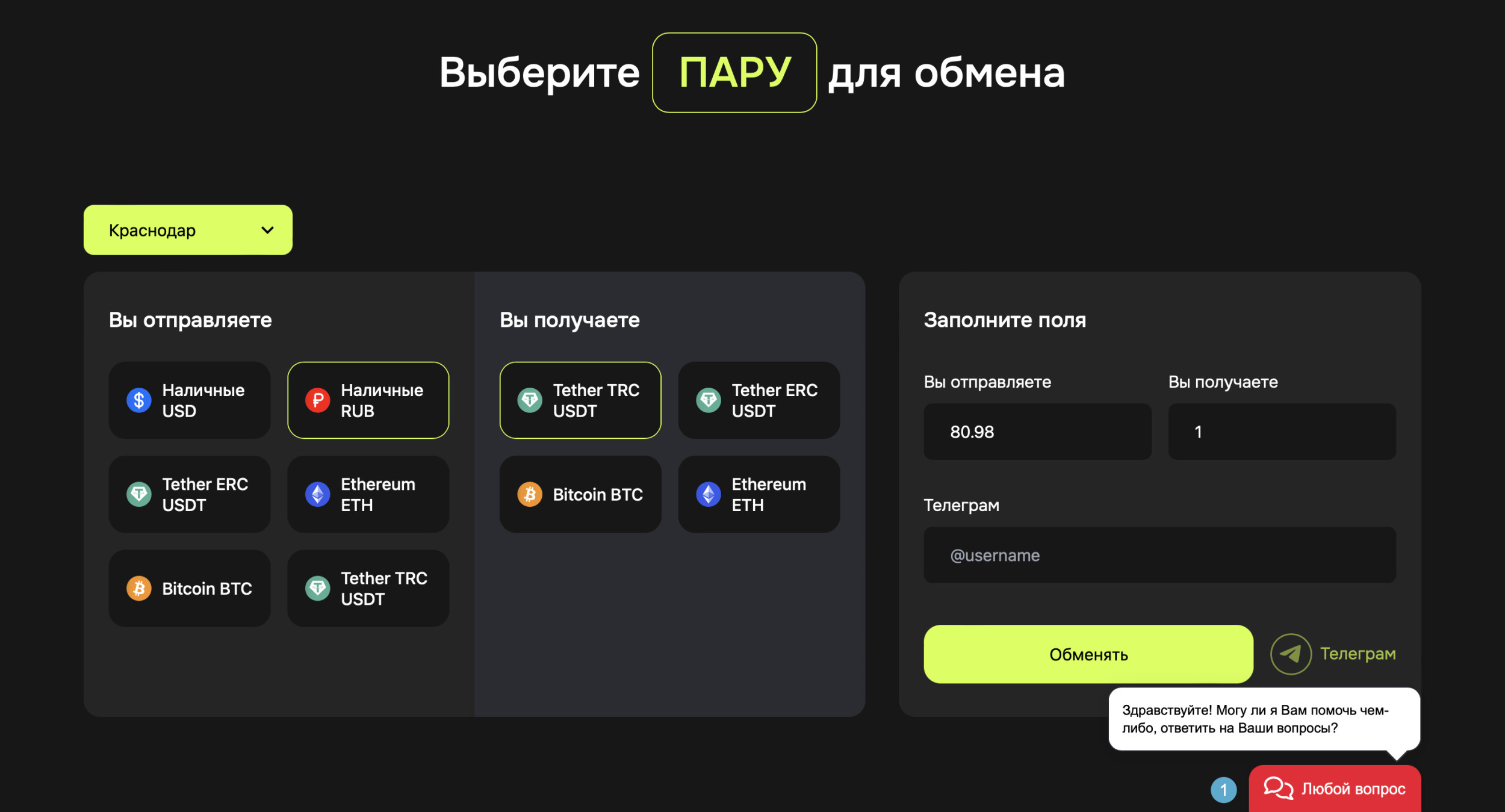 Ниже представлена подробная пошаговая инструкция, как быстро и безопасно обменять криптовалюту (например, USDT) на рубли через офис одного из представителей топа лучших обменников криптовалюты в России.