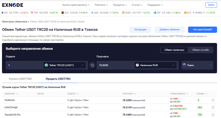 В этой статье мы разберем, как выбрать проверенный обменник криптовалют в Томске, на что обратить внимание при первом визите, где безопасно купить USDT, и почему в 2025 году оффлайн-формат остается одним из самых надёжных решений. Рекомендуем посетить сайт мониторинга Exnode для просмотра отзывов и сравнения обменников друг с другом.