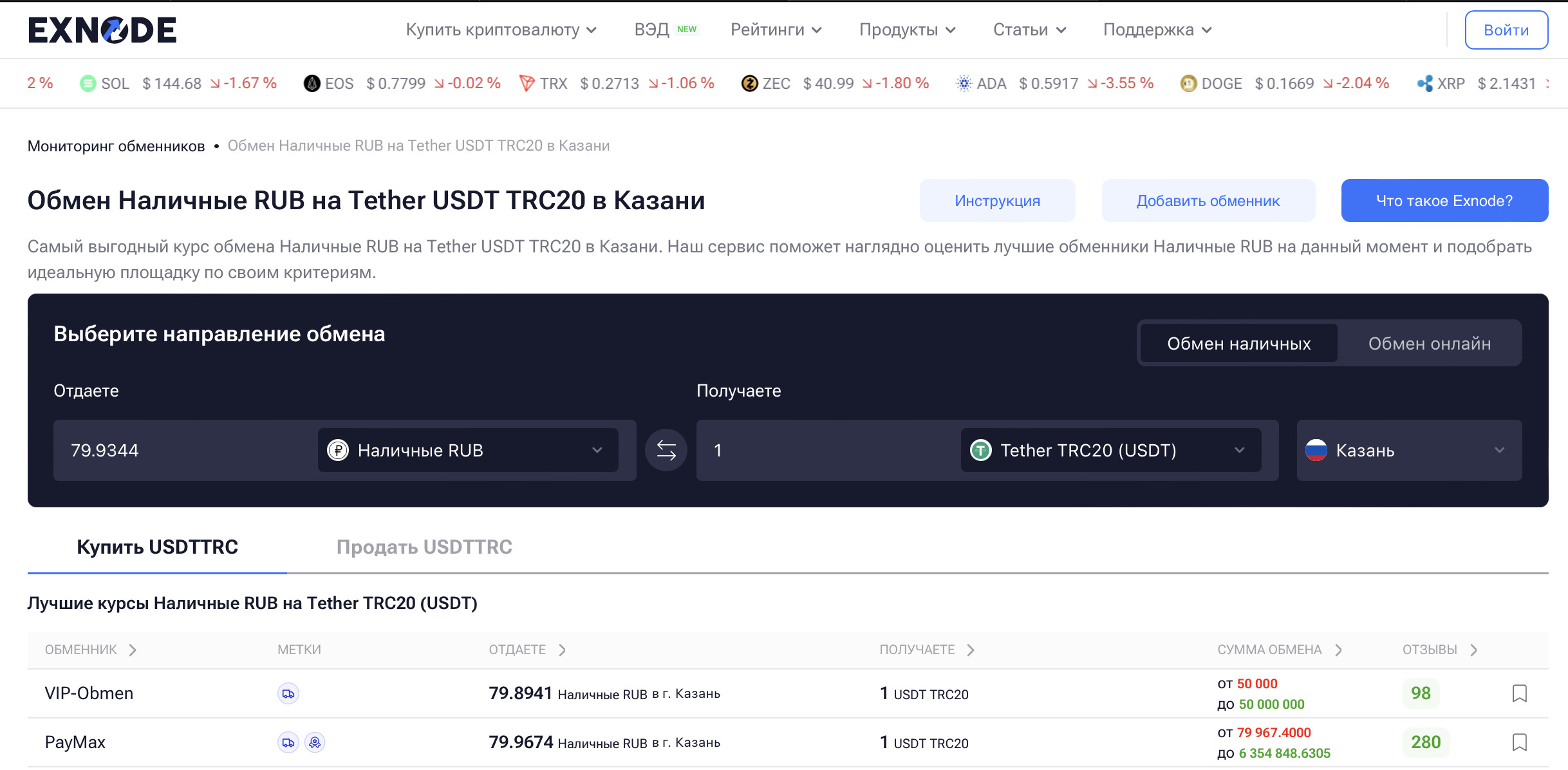 Хорошая новость: в Казани есть проверенные точки, где можно провести обмен криптовалюты — будь то USDT, Bitcoin или Ethereum — с прозрачными условиями. А чтобы не выбирать вслепую, стоит заглянуть на Exnode — мониторинг обменников криптовалют, где собраны только проверенные площадки с реальными отзывами и курсами.