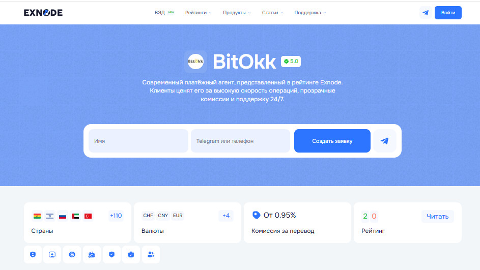 BitOkk — еще один платежный агент для оплаты инвойса в Китай 2025. Платформа стабильно входит в рейтинги лучших сервисов для перевода средств.