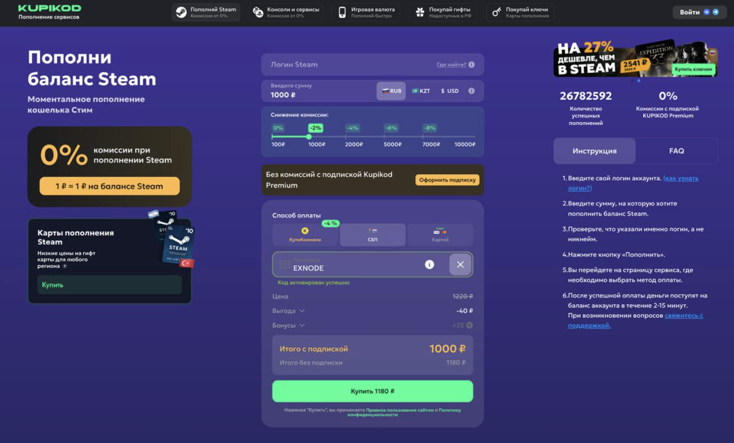 Почему выгодно пополнять Steam через КупиКод Premium в 2025 году