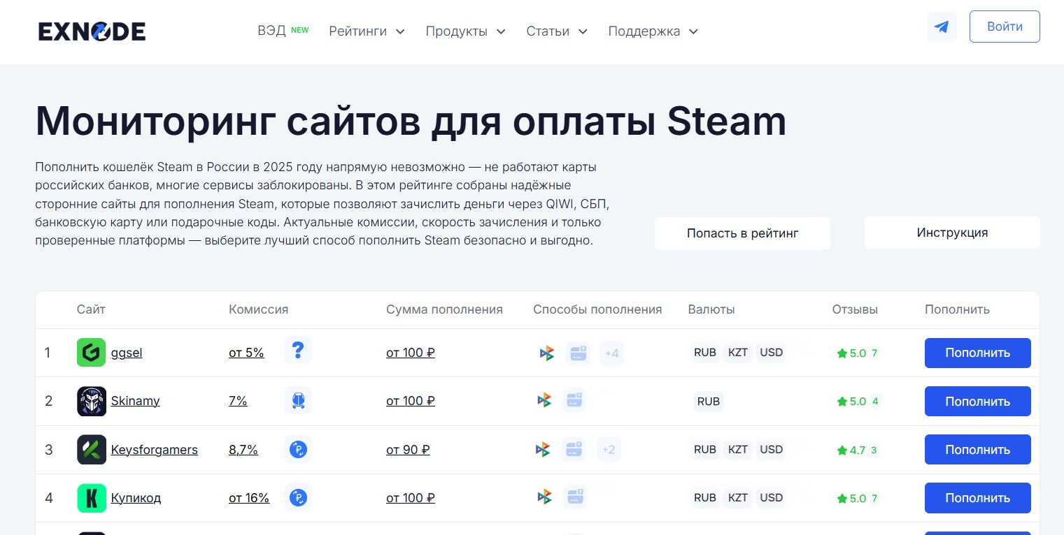 Как недавно отмечалось в статье на РБК, наиболее удобным, безопасным и выгодным способом пополнения счета в 2025 году остается использование проверенного платежного посредника. Именно такие сервисы, прошедшие независимый мониторинг площадки Exnode, собраны в обзоре. В этой статье мы детально разберем лучшие из них, сравним комиссии и дадим четкие рекомендации, чтобы вы могли пополнить баланс Steam быстро и без переплат.