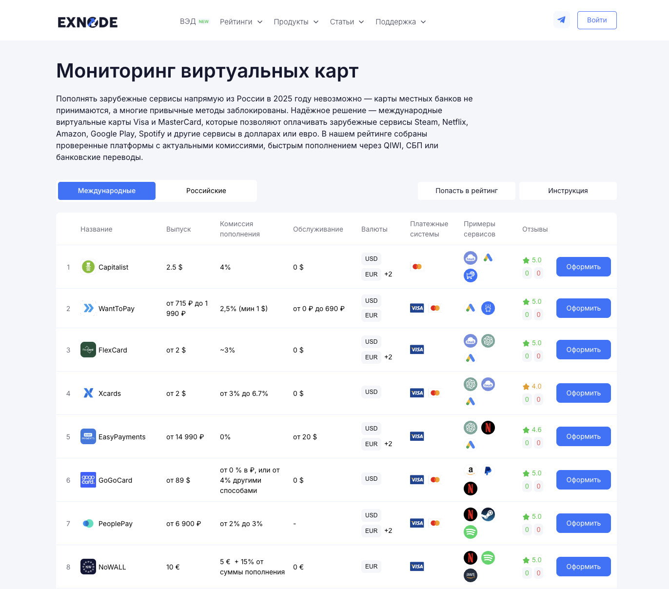 Такие карты выпускаются в долларах или евро, подходят для оплаты зарубежных сервисов и отличаются выгодными условиями — отсутствием платы за обслуживание, гибкими лимитами и мгновенным выпуском. Если вы хотите оформить карту зарубежного банка, находясь в России, — это реальная и быстрая процедура, доступная каждому в 2025 году. В 2025 году оформить зарубежную карту стало необходимостью для тех, кто работает с международными сервисами, рекламой или подписками. Российские банковские карты по-прежнему не принимаются на зарубежных платформах, и оплатить Google Ads, ChatGPT Plus, Midjourney, Amazon или Airbnb напрямую невозможно. Чтобы обойти эти ограничения, пользователи все чаще выбирают оформить карту для оплаты зарубежных сервисов — это безопасный и законный способ проводить платежи без посредников и блокировок. Современные финтех-сервисы предлагают простое решение: виртуальная карта зарубежная оформить можно полностью онлайн, без визита за границу и долгих процедур. Можно ли оформить зарубежную карту, находясь в России? Да, процесс занимает всего несколько минут. Чтобы оформить зарубежную банковскую карту в России, достаточно пройти онлайн-верификацию и пополнить баланс. Многие платформы позволяют оформить зарубежную карту бесплатно или с минимальной комиссией. В результате пользователь получает полноценный инструмент для международных расчетов, способный заменить любую привычную карту Visa или Mastercard. Если вы хотите оформить зарубежную карту онлайн, важно выбрать надежную платформу с прозрачными тарифами и поддержкой международных платежей. В 2025 году оформить зарубежную банковскую карту в России можно за несколько минут — без поездки за границу, бумажных анкет и долгих проверок. Ниже представлен рейтинг популярных сервисов, где оформить зарубежную карту безопасно, быстро и с выгодными условиями. Capitalist — виртуальные карты MasterCard для расчетов за границей Capitalist — международный финтех-сервис, позволяющий оформить зарубежную карту Visa или MasterCard для расчетов в долларах и евро. Подходит для фрилансеров, маркетологов и компаний, оплачивающих подписки, рекламу и SaaS-платформы. Комиссии: выпуск — 2,5 $, пополнение — 4 %, обслуживание — 0 $. Валюты: USD, EUR (+ дополнительные). Преимущества: мгновенный выпуск, отсутствие платы за обслуживание, высокая надежность и поддержка зарубежных сервисов — Google, ChatGPT, Amazon, Midjourney. Отличный выбор, если вы хотите оформить карту для оплаты зарубежных сервисов и пользоваться ею без ограничений. WantToPay — моментальное оформление карт для подписок WantToPay — удобный сервис, где можно оформить зарубежную карту онлайн буквально за несколько минут. Платформа подходит для оплаты подписок ChatGPT Plus, Midjourney, Notion и других зарубежных сервисов. Комиссии: выпуск — от 715 ₽ до 1 990 ₽, пополнение — 2,5 % (мин. 1 $), обслуживание — от 0 ₽ до 690 ₽. Валюты: USD, EUR. Преимущества: быстрая регистрация, прозрачные комиссии, мгновенная активация и стабильная работа с международными площадками. В 2025 году WantToPay остаётся одним из самых простых способов оформить зарубежную карту без лишних проверок. FlexCard — мультивалютные карты для онлайн-платежей FlexCard позволяет оформить зарубежную банковскую карту с поддержкой нескольких валют. Сервис ориентирован на пользователей, совершающих частые онлайн-платежи и рекламные транзакции. Комиссии: выпуск — от 2 $, пополнение — 