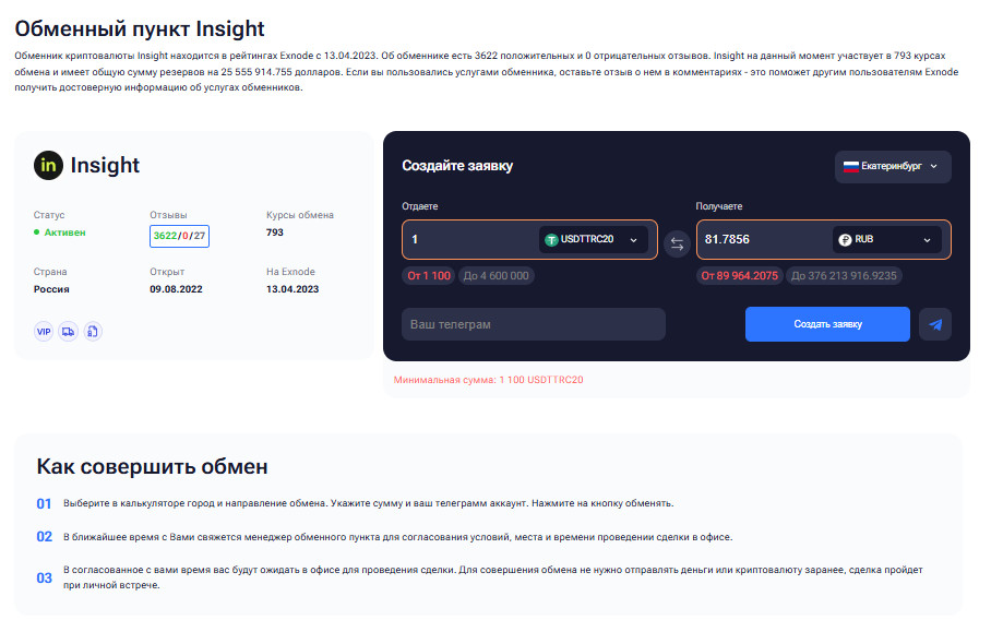 Сделка в криптообменнике Екатеринбурга