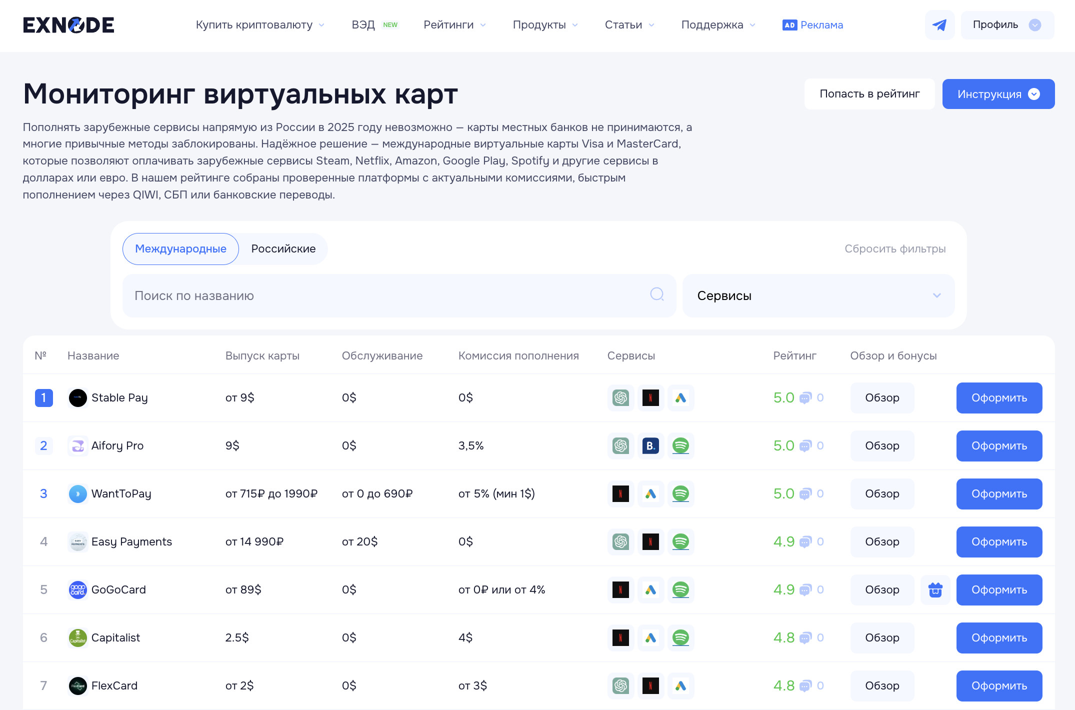 Виртуальные карты в 2025 году стали основным инструментом для тех, кто оплачивает зарубежные подписки, рекламу или сервисы вроде ChatGPT и Spotify. Квикпей виртуальная карта позволяет проводить международные платежи, независимо от ограничений российских банков. Она подходит для онлайн-оплат, фрилансеров, бизнеса и всех, кто работает с зарубежными площадками. На квикпей сайте отмечено, что оформление занимает несколько минут, а управление счётом полностью цифровое. Платежная система квикпей обещает стабильные переводы и поддержку популярных сервисов, что делает её потенциально удобным решением для пользователей, ищущих альтернативу традиционным картам. Однако квикпей новая платежная система и всё ещё развивается, а пользователи в квикпей отзывах часто упоминают ограничения по валютам и лимитам. В отличие от других финтех-платформ с картами Visa и Mastercard, банк квикпей пока не предлагает расширенные функции для международных переводов. Из-за этого система квикпей подходит не всем, и многие предпочитают проверенные решения с официальными лицензиями и поддержкой Apple Pay и Google Pay. Перед оформлением карты квикпей стоит внимательно изучить условия на квикпей официальном сайте и сравнить их с альтернативами. Когда пользователи ищут рабочие способы оплатить зарубежные сервисы, многие обращают внимание на альтернативы квикпей, ведь платежная система квикпей пока не всегда стабильно справляется с международными транзакциями. На рынке уже сформировался пул финтех-платформ, которые позволяют безопасно выпускать виртуальные карты и оплачивать подписки без ограничений. Рассмотрим пять сервисов, которые часто выбирают вместо квикпей новой платежной системы. 1. Stable Pay — стабильность и простые условия Stable Pay — это финтех-сервис, который выпускает виртуальные карты для международных платежей. Стоимость выпуска — от 9 $, комиссия за пополнение — 0 $, обслуживание — бесплатно. Валюты — доллар и евро. Карты Stable Pay работают с системами Visa и Mastercard, подходят для оплаты Google Ads, ChatGPT, Spotify и других сервисов. Простота интерфейса и отсутствие скрытых комиссий делают его удобным инструментом для регулярных оплат, в том числе для тех, кто ранее пользовался картой квикпей, но ищет более предсказуемый сервис. 2. WantToPay — быстрый выпуск и удобное управление WantToPay предлагает оформить карту онлайн за несколько минут. Выпуск — от 715 ₽ до 1 990 ₽, комиссия на пополнение — 5 % (минимум 1 $), обслуживание — от 0 ₽ до 690 ₽. Валюты — доллар и евро. Карта стабильно работает с ChatGPT Plus, Midjourney, Google Workspace, Notion и другими зарубежными платформами. В отличие от банка квикпей, здесь процесс регистрации максимально прост, а поддержка оперативно решает вопросы пользователей. WantToPay стал выбором многих фрилансеров и предпринимателей, которым важна скорость оформления и понятные тарифы. 3. EasyPayments — международная банковская карта с Apple Pay и Google Pay EasyPayments оформляет карты зарубежных банков с поддержкой Apple Pay и Google Pay. Выпуск — от 14 990 ₽, обслуживание — от 20 $. Валюты — доллар, евро и дополнительные. Переводы проходят официально через SEPA и SWIFT, что особенно актуально для компаний, работающих с иностранными клиентами. В отличие от квикпей виртуальной карты, EasyPayments предлагает полноценное банковское решение с высоким уровнем защиты и международными реквизитами, подходящее для профессиональных расчетов. 