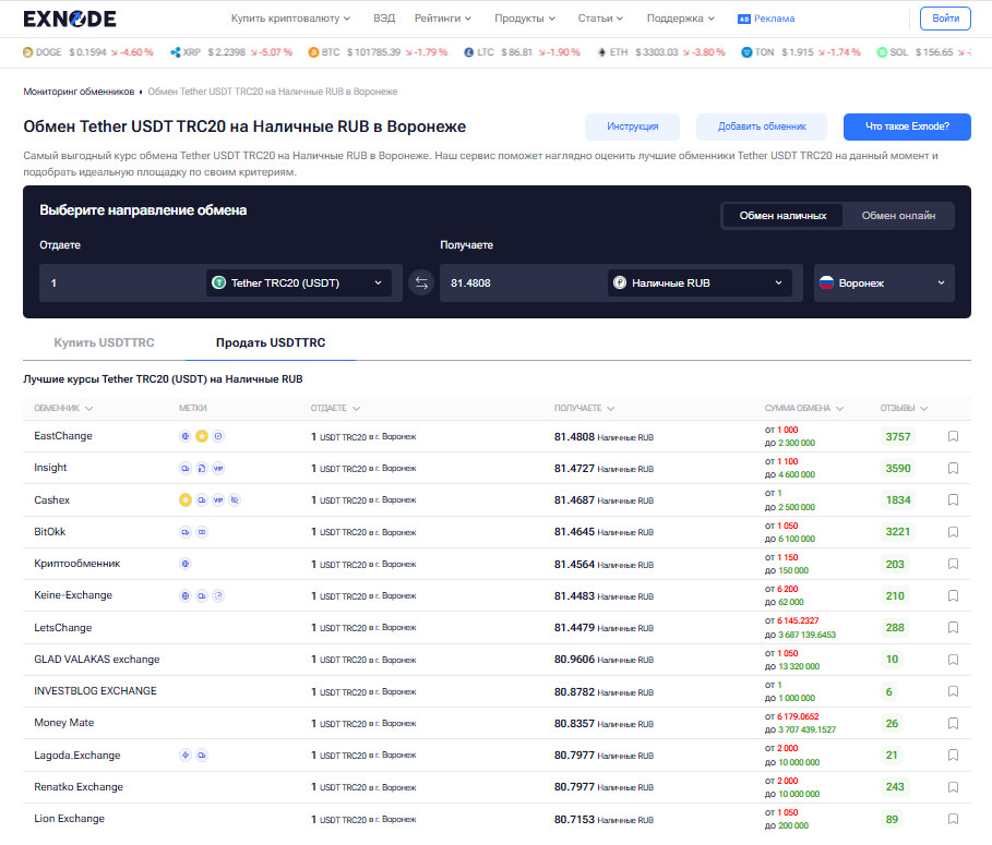 Выбор надежного офлайн-обменника важен как для новичков, так и для опытных пользователей. С помощью сервисов мониторинга, таких как Exnode, можно проверить репутацию обменника, наличие подтвержденного адреса и отзывы клиентов. Это помогает заранее оценить надежность точки и провести операцию с криптовалютой в Воронеже безопасно, быстро и удобно.