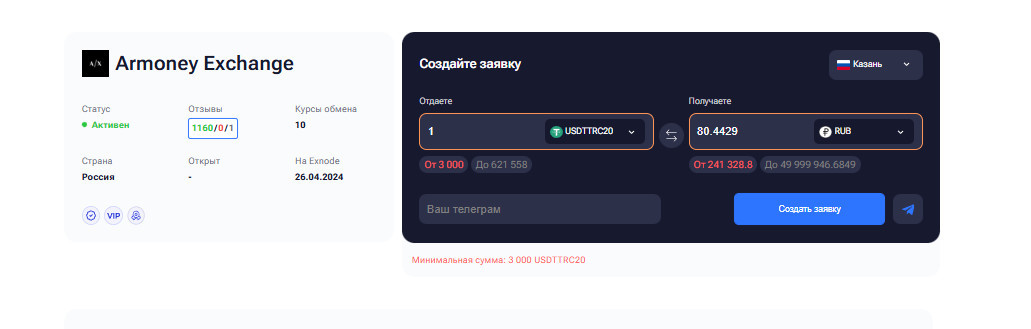 LetsChange Этот обменник криптовалют в Воронеже известен прозрачностью и удобством операций. Преимущества: Cashex Проверенный обменник крипты в Воронеже, обеспечивающий безопасные и комфортные условия обмена. Преимущества: Armoney Exchange Надежный офлайн-обменник криптовалют в Воронеже для безопасных сделок. Преимущества: Эти три обменника показывают, что обмен криптовалюты в Воронеже может быть удобным, безопасным и полностью контролируемым процессом, особенно при работе через надежные офлайн-точки с проверенной репутацией. Выбор надежного криптообменника в Воронеже — важный шаг для безопасного и комфортного обмена криптовалюты. Независимо от того, хотите ли вы купить USDT в Воронеже, обменять биткоины или другие токены, правильный выбор офлайн-точки минимизирует риски и обеспечивает уверенность на каждом этапе сделки. Репутация и проверка обменника: Надежность и безопасность операций: Удобство и функциональность обслуживания: Отзывы и рекомендации от пользователей: Следуя этим рекомендациям, вы сможете выбрать проверенный обменник криптовалют в Воронеже, безопасно обменять и купить в Воронеже USDT или провести другие операции с криптой, полностью контролируя процесс и минимизируя риски. Физические криптообменники в Воронеже позволяют безопасно и удобно проводить операции с криптовалютой, обеспечивая полный контроль на каждом этапе. Такой подход особенно актуален для пользователей, которые впервые работают с цифровыми активами и хотят обмен крипты в Воронеже наличными или через безопасный перевод. 1. Выбор надежного обменника 2. Дистанционное согласование сделки 3. Подготовка документов и кошелька 4. Проведение обмена в офисе 5. Завершение и проверка транзакции Следуя этим шагам, проверенные офлайн обменники криптовалют в Воронеже обеспечивают безопасный и прозрачный обмен. Сделки в Воронеже с USDT и другими криптовалютами проходят быстро, надежно и удобно. При работе с криптообменниками в Воронеже важно избегать распространенных ошибок, которые могут привести к потерям средств или задержкам в проведении сделки. Даже опытные пользователи иногда пренебрегают базовыми правилами безопасности, что снижает надежность операций: Соблюдение этих рекомендаций помогает минимизировать риски, безопасно купить криптовалюту в Воронеже и обменять крипту в Воронеже, полностью контролируя процесс и защищая свои средства. Надежные криптообменники в Воронеже позволяют лично контролировать процесс обмена USDT, BTC и других токенов, обеспечивая прозрачность операций и уверенность в безопасности средств. Использование сервисов мониторинга, таких как Exnode, помогает оценить репутацию обменника и выбрать оптимальный вариант для проведения сделки. Рейтинг проверенных офлайн-точек учитывает надежность, качество обслуживания и опыт работы с различными криптовалютами, что позволяет клиентам быстрее ориентироваться на рынке. Если вам нужно оплатить Инвойс или провести любой другой международный платеж, мы создали новый раздел — мониторинг платежных агентов, который позволяет безопасно управлять финансовыми операциями и проверять надежность посредников.