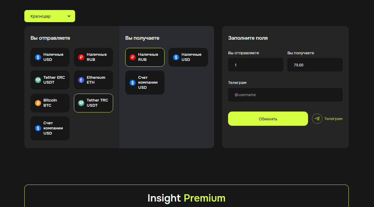 Insight подойдет тем, кто ценит порядок, точность и поддержку на каждом этапе сделки. Здесь удобно выполнить обмен криптовалюты в Краснодаре, проверить реквизиты и получить рекомендации по работе с кошельками.