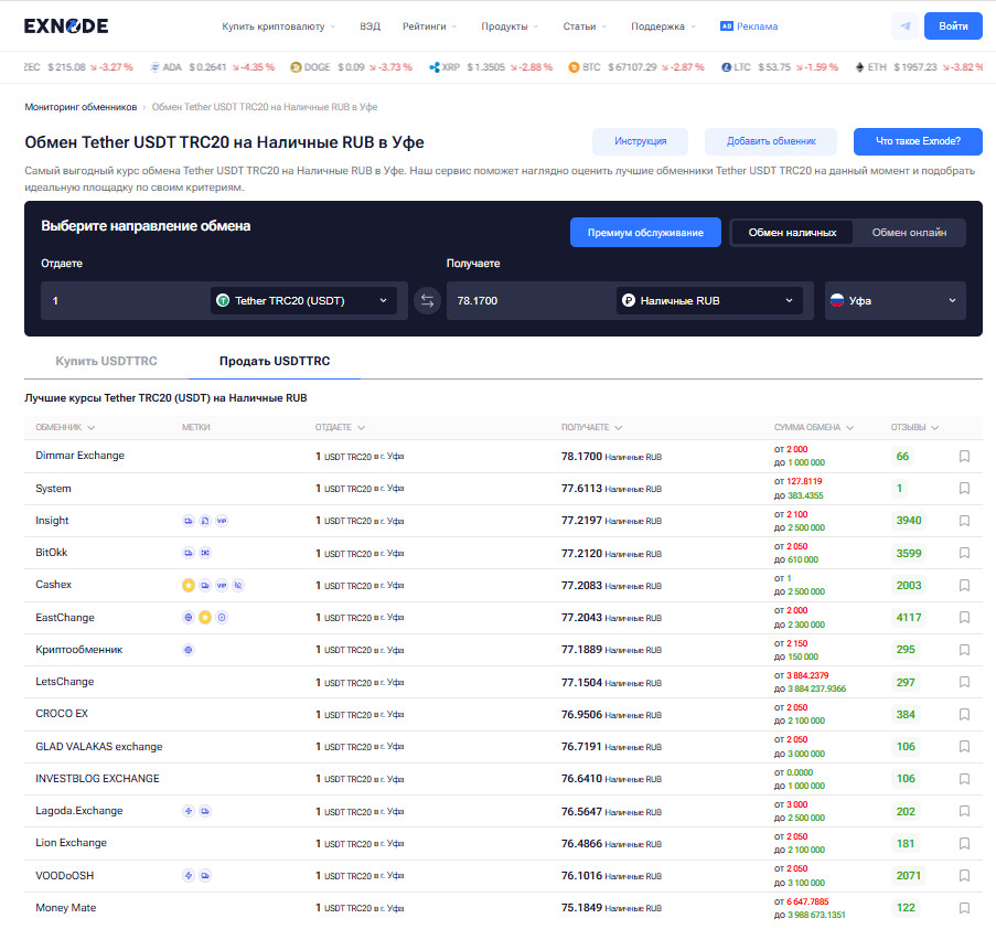 Для удобного поиска надёжных сервисов пользователи активно обращаются к мониторингу Exnode. Здесь собраны актуальные данные о криптообменниках Уфы, включая адреса офисов, контакты, график работы и деловую репутацию. Это позволяет заранее оценить условия, выбрать безопасные точки для обмен криптовалюты в Уфе и работать с USDT, биткоинами и другими токенами без лишних рисков.
