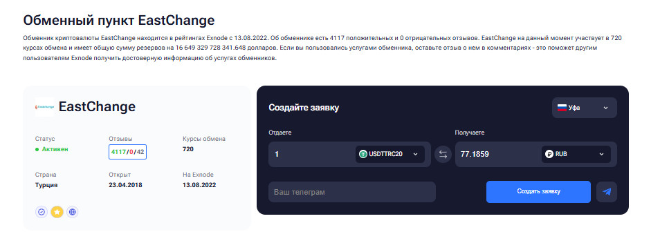 EastChange подходит для пользователей, которые ценят системный подход и возможность планировать операции заранее. Идеален для регулярного обмена крипты в Уфе.