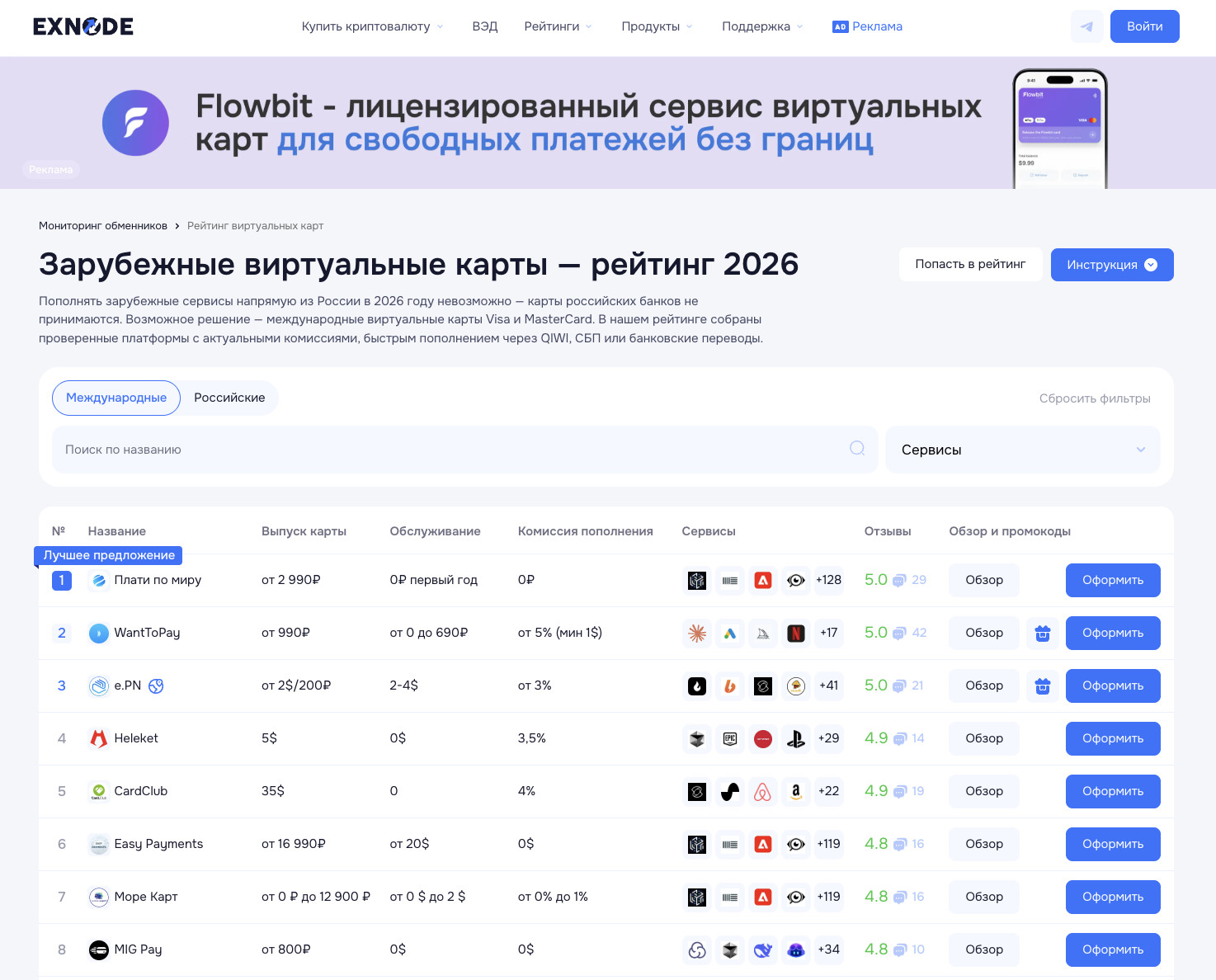 Разобраться в десятках предложений помогает мониторинг виртуальных карт Exnode — площадка, где собраны актуальные сервисы, условия выпуска и отзывы пользователей. Это экономит часы на сравнении тарифов и снижает риск нарваться на сервис пополнения Apple ID с завышенной комиссией или нестабильной работой.