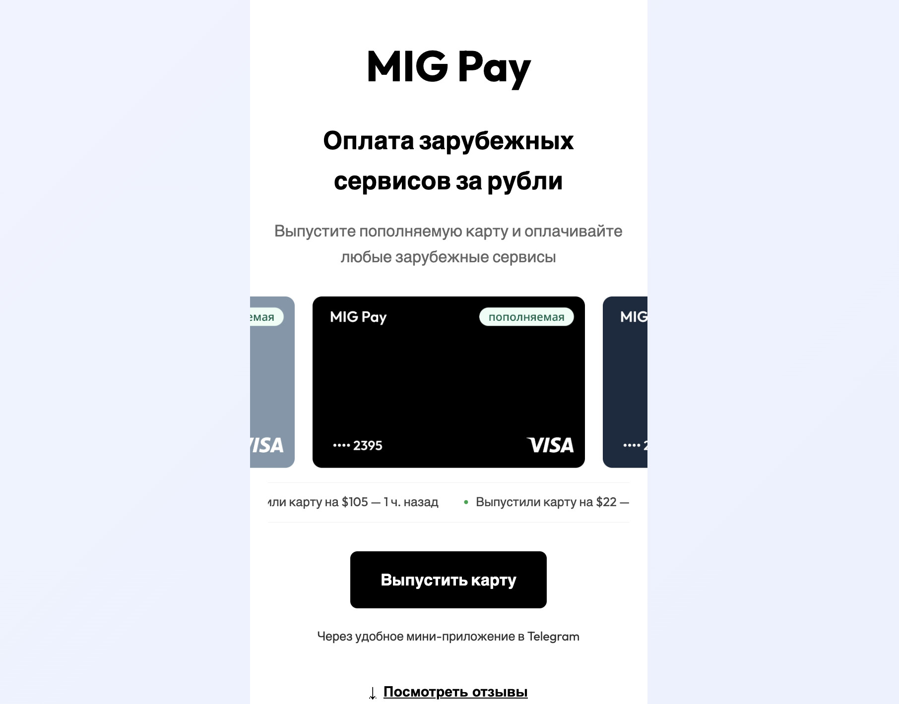 1. Плати по миру Плати по миру выпускает виртуальные карты Mastercard для оплаты зарубежных сервисов, подписок и путешествий. Оформление происходит через Telegram-бот и занимает несколько минут. Карты подходят для онлайн-платежей, приложений, а также офлайн-оплаты за границей через Apple Pay и Google Pay. Условия: Типы карт: Примеры поддерживаемых платформ: iCloud, Spotify Premium, Netflix и многие другие. 2. WantToPay WantToPay — финтех-сервис виртуальных карт для оплаты онлайн-подписок, цифровых сервисов и интернет-покупок. Оформление проходит через Telegram-бот, для выпуска карты обязательна KYC-верификация, после прохождения которой пользователь получает доступ к выбору тарифа. Все операции подтверждаются через 3D-Secure. Условия: Типы карт: Пополнение возможно через банковский перевод, или виртуальную валюту (она используется именно для зачисления средств и автоматически конвертируется в валюту карты). Примеры поддерживаемых платформ: Claude, Midjourney, iCloud, App Store и другие. 3. E.pn E.pn — сервис виртуальных карт для международных платежей. Платформа известна возможностью выбора BIN и публичной статистикой успешности транзакций. Поддержка поможет подобрать удобный способ оплаты — для этого нужно выбрать оплату через оператора (manual payments), что особенно удобно если вы находитесь в России или странах СНГ. Условия: Типы карт: Как выбрать подходящий BIN в E.pn: Шаг 1. Перейдите в раздел Dashboard или Cards и нажмите Issue a card. Шаг 2. В поле поиска введите нужный сервис или выберите из предложенных (например Apple). Шаг 3. Нажмите кнопку Check. Шаг 4. В открывшемся меню оцените показатели: Rate (процент принятых транзакций), Approved (число одобренных), Declined (число отклонённых). Шаг 5. Выпустите карту с подходящим BIN и оплачивайте покупки. Примеры поддерживаемых платформ: App Store, Apple Music, ChatGPT, Booking и другие. 4. Heleket Heleket позволяет оформить виртуальную карту для международных платежей за несколько минут. Сервис отличается низкой стоимостью выпуска, бесплатным обслуживанием, фиксированными комиссиями и большим количеством поддерживаемых платформ. Условия: Типы карт: Примеры поддерживаемых платформ: Apple Music, ChatGPT, Spotify, Netflix и многие другие. 5. CardClub CardClub выпускает виртуальные карты для оплаты зарубежных сервисов, подписок и онлайн-покупок. Сервис работает с фиксированной стоимостью выпуска и прозрачными условиями. Условия: Типы карт: Примеры поддерживаемых платформ: Spotify, Booking, ChatGPT и другие. 6. Easy Payments Easy Payments позволяет оформить карту зарубежного банка из России. Сервис предлагает виртуальные и физические варианты с возможностью доставки. Условия: Типы карт: Примеры поддерживаемых платформ: iCloud, Netflix, Spotify Premium. 7. МореКарт МореКарт предлагает виртуальные и физические карты Visa и Mastercard в долларах и евро, выпущенные в разных странах. Условия: Типы карт: Примеры поддерживаемых платформ: iCloud, ChatGPT, Spotify, Netflix и другие. 8. MIG Pay MIG Pay выпускает пополняемые виртуальные карты Mastercard для оплаты зарубежных сервисов и подписок. Оформление происходит через Telegram-бот и занимает около 2 минут. Условия: Типы карт: Примеры поддерживаемых платформ: App Store, ChatGPT, YouTube, Spotify Premium. Разброс большой — от бюджетных решений с символической стоимостью выпуска до премиальных вариантов со сроком жизни до пяти лет и возможностью выпуска физических карт банков. Для быстрой оплаты подписок и закрытия вопроса с пополнением Apple ID подойдут карты с выпуском за минуты и нулевой комис