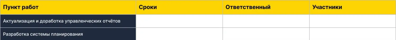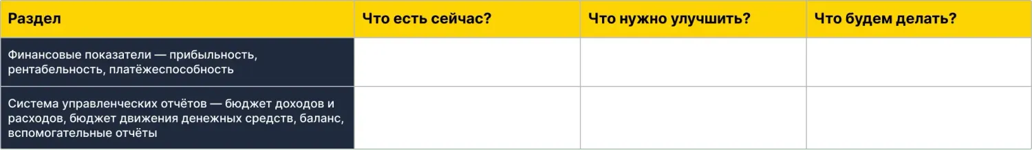По итогам диагностики финдиректору стоит свести вместе все данные и подготовить план действий. Заключение можно подготовить по следующему шаблону. Разделы диагностики взяты для примера — финдиректор может сократить или увеличить количество пунктов с учётом специфики своей работы. Определившись с тем, что происходит в компании и что можно улучшить, менеджер должен вновь встретиться с руководством. Необходимо обсудить, какие идеи и предложения пойдут в работу. После изучения компании и диагностики финдиректору пора внедрять свои идеи. На этом этапе менеджер может составить план-график с ответственными и сроками исполнения. Бесплатный чек-лист: «Где бизнес может найти дополнительный кэш». Всё кликабельно — можете скачивать. Есть мысли и дополнения по поводу темы? Делитесь в комментариях. Подписывайтесь на Telegram-каналы «Финансиста», чтобы узнать больше о финансовом менеджменте и автоматизации.