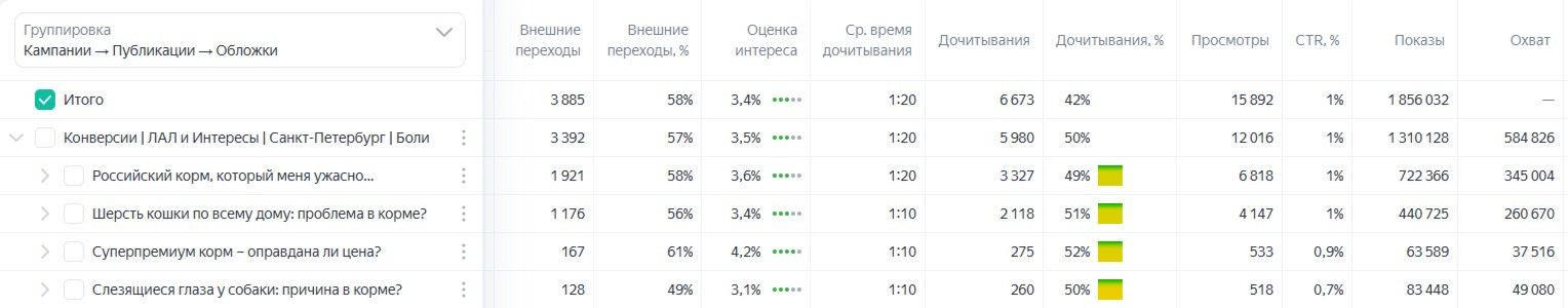 Провокация привлекла внимание, а текст раскрыл позитивный смысл: питомец съедал корм слишком быстро, а шерсть стала гуще. Промостраницы эффективны, потому что объединяют глубокий контент с эмоциональным вовлечением. Они позволяют не просто показать продукт, а рассказать его историю: через личные кейсы, экспертные рекомендации или провокационные заголовки. Такие материалы цепляют внимание, отвечают на скрытые запросы аудитории и мягко подводят к целевому действию. Аналитика в реальном времени помогает отсеивать слабые варианты, оставляя только те, что дают клики и конверсии. В итоге инструмент работает на всех этапах воронки: и на верх воронки (узнаваемость), и на нижнюю часть (заявки), сохраняя баланс между брендингом и продажами. Яндекс Промостраницы доказали эффективность не только для охватов, но и для перформанс-задач. Успех Doctrine показывает: инструмент работает в нише премиум-товаров при условии тестирования контента, точного таргетинга и аналитики. Главное — адаптировать формат под цели и аудиторию. Примеры других сфер: e-commerce, медицина, недвижимость. Не подходит только для гиперлокальных бизнесов.