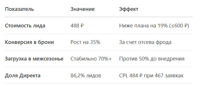 - Снизить стоимость привлеченного лида до ≤600 ₽ с учетом сезонности.
