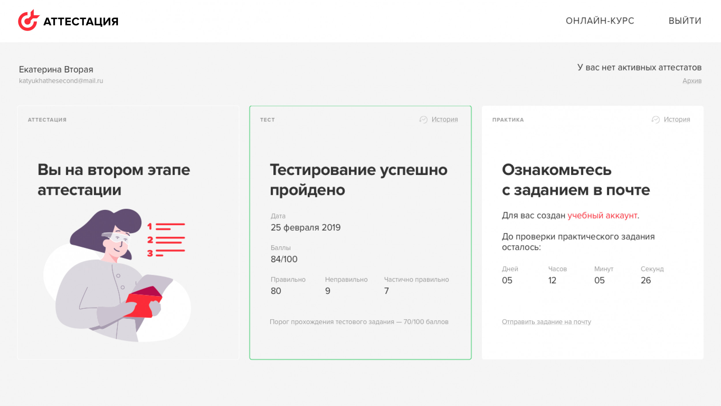 Пересдать тест можно через 1 день после прохождения теста, практику — через 5 дней. Количество попыток неограниченно.