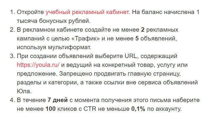 Наличие аттестованных сотрудников в штате позволяет агентству претендовать на сертификат. А полные условия сертификации — на скриншоте с сайта MyTarget. Для подготовки к сдачи первой части можно пройти официальный онлайн-курс от площадки MyTarget, а также изучить справку (ссылки в конце статьи). Все ответы можно найти в справке, причем почти дословно. Вопросы есть с одним вариантом ответа и несколькими. Если в вопросе с несколькими вариантами ответов был выбран хотя бы один правильный ответ, то баллы все равно начисляются, но не 1, а 0,5. На скриншоте из справки можно составить представление о темах, которые могут встретиться в тесте. Также важно понимать основные термины системы, как считаются те или иные показатели. Вот пример вопроса, где надо знать формулу расчета CPM. При несдаче, к сожалению, не покажут, в каких именно темах были неверные ответы. Только общий балл. Когда сдадите теорию, получите доступ к практике. Это реальный тест в боевых условиях — вам дадут 1000 рублей на бюджет и задание, каких показателей нужно добиться. Далее выбираете товар или услугу на сервисе Юла, которую будете рекламировать. Лучше выбирать несколько — так как их могут быстро раскупить. Тогда просто замените ссылки в объявлениях на рабочие. То есть все как в реальной жизни — нужно открутить рекламу, удерживая нужные показатели. Этим аттестация MyTarget уникальна, и непохожа на обычное тестирование, где можно просто скачать ответы. И, так же как в реальности, можно не сдать просто потому что ЦА не зашли ваши креативы. Если бюджет закончится раньше 7 дней, но при этом будут достигнуты нужные показатели, сдачу могут засчитать. С каждым конкретным товаром будет своя стратегия. Здесь мы рассказываем подробнее о том, как мы продвигали спортивные костюмы и сдали, хоть и не с первой попытки. В вашем случае будет иначе. Но несколько общих рекомендаций можем дать. Очевидно, если нужно набрать 100 кликов за 1000 рублей, предельная средняя цена клика — 10 рублей. Значит, лучше ставить ставку заведомо меньше, рублей 8, потому что по разным креативам она в итоге будет разной. Где-то будет CTR не очень, где то аудитория успеет выгореть. Поэтому нужен запас, который потратится в рамках тестирования. Чтобы объявления были кликабельными, они должны быть максимально прямолинейными и четко соответствующими рекламируемому товару. В заголовке — название товара. На картинке — именно этот товар, желательно показываем его целиком. Не используем картинки, где видна только часть товара, либо абстрактные изображения. Ниже примеры релевантного и не очень объявлений. Регулярно отслеживаем показатели. MyTarget дает огромные охваты, там масса аудитории. Поэтому результаты работы креативов можно увидеть уже в первый час. Если они неудовлетворительны, то надо сразу отключать и менять, вряд ли алгоритм системы быстро их улучшит. Пересдавать теорию можно каждый день, раз в 24 часа, поэтому имеет смысл делать пробную сдачу, чтобы ознакомиться с вопросами. А потом уже сосредоточиться и сдавать «набело», и быть готовым перейти к практике. Удачи в аттестации! Надеемся, что наша статья поможет вам сдать ее быстрее. А статус сертифицированного агентства по MyTarget привлечет новых клиентов.