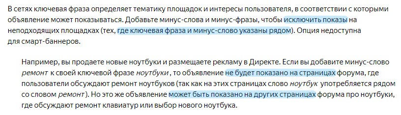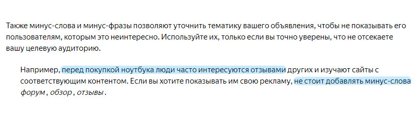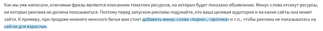 Сначала, собственно, наша статья из блога Finepromo о минус-словах в РСЯ, а затем — рекомендации экспертов.