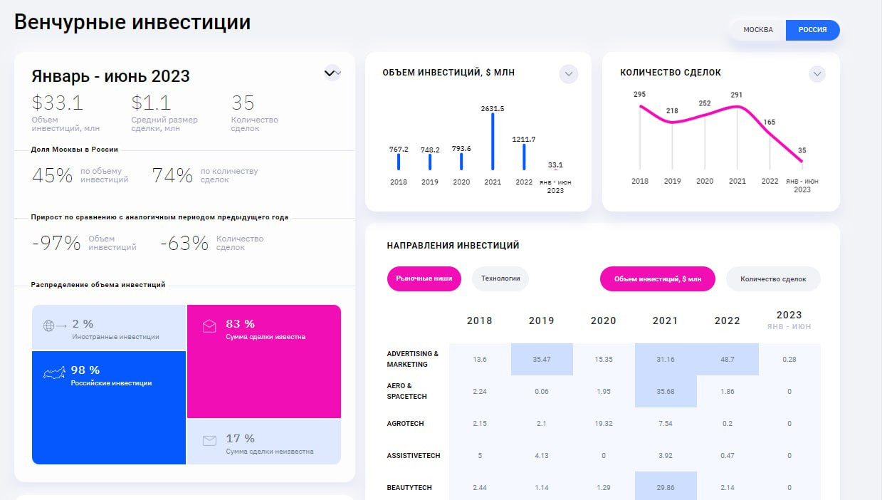 Полную аналитику по венчурным инвестициям России и Москвы в частности смотрите на портале Venture Guide.