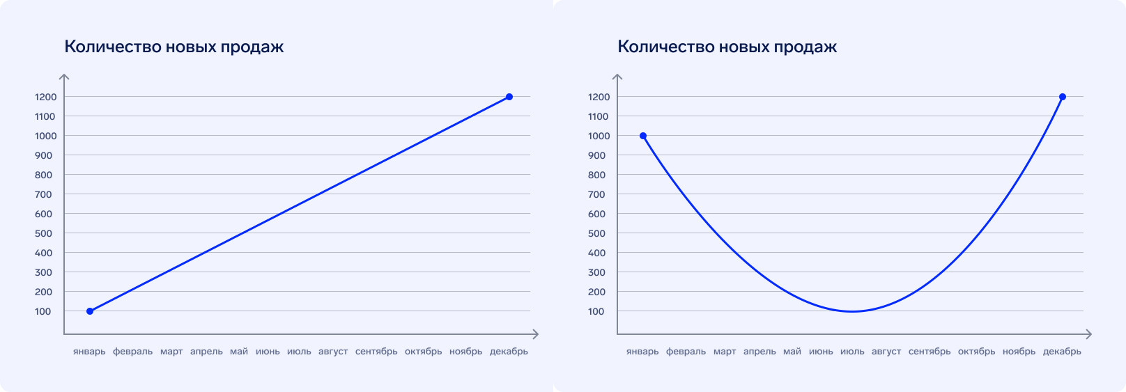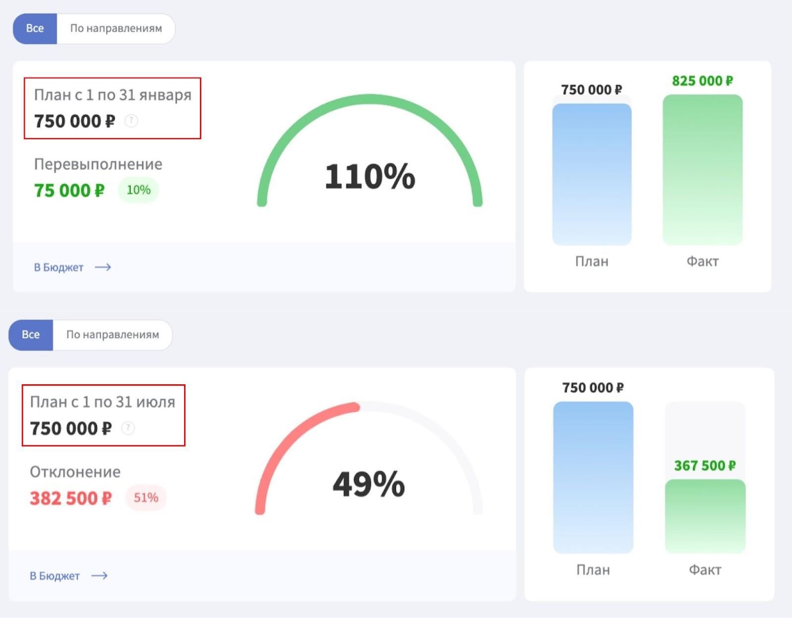 Бояться нужно не только невыполнения плана, но и его перевыполнения. Казалось бы, в чём здесь может быть опасность? Отдел продаж обеспечил больше поступлений, они молодцы. Но были ли другие отделы готовы к такому количеству продаж? Хватит ли производственных мощностей, чтобы поставить всем клиентам заказы вовремя, или заказчикам придётся ждать, что негативно скажется на репутации компании? Хватит ли сырья на складе или придётся срочно искать нового поставщика и заказывать у него втридорога, теряя деньги? Всё это может привести к нестабильности в компании, и мнимый успех обернётся провалом. В стабильном бизнесе показатели растут не хаотично, а планомерно, то есть их рост подконтролен собственнику. Контролировать рост — значит планировать с высокой точностью, избегая серьезных отклонений как в меньшую, так и в большую сторону. Точность планирования во многом зависит от умения анализировать: смотреть, что с показателями происходит сегодня, на этой неделе, в прошлом месяце, собирать и сравнивать данные разных временных периодов. В крупных организациях здесь на помощь собственнику приходит финансовый директор. Но владельцы малых бизнесов тоже могут взять этот процесс под свой контроль с помощью специальных инструментов — например, Дашборда в Финтабло. Часто компании не могут выполнить план просто потому, что он изначально был неправильно составлен. Для точного планирования важна опора на данные предыдущих периодов, именно они помогут спрогнозировать наиболее вероятную сумму поступлений и объем прибыли в будущем. А если этих данных нет, и собственник при планировании опирается только на свои желания и предположения, вероятность выполнения такого плана стремится к нулю. Ниже объясняем, как правильно анализировать показатели за разные временные периоды, какие особенности бизнеса важно учесть при планировании и каким критериям должен отвечать адекватный план продаж. Оценивать выполнение нужно в разрезе разных временных периодов: смотреть на показатели конкретного дня, недели и месяца. Важно учитывать все эти три временных разреза: фокусироваться только на одном из них будет ошибкой. Например, если собственник сосредотачивается исключительно на данных по дням, он теряет фокус месяца и в итоге может обнаружить, что месячный план они не выполнили. За ежедневным выполнением плана продаж должен следить руководитель отдела продаж (РОП) и в случае отставания мотивировать своих сотрудников. Например, сказать подчиненным, что они должны совершать больше звонков клиентам, чтобы база контактов задействовалась эффективно. А сам должен прослушивать и анализировать эти звонки, находить недочеты, проводить планерки с сотрудниками и выяснять, почему клиенты уходят на конкретном этапе воронки продаж. Задача же собственника — смотреть на ситуацию с разных уровней, чтобы видеть картину целиком. Для этого важно знать не только дневные показатели, но также данные недели и месяца. Отслеживание только дневных показателей полной картины не даст, поэтому зацикливание на них может привести к управленческим ошибкам. «Если план на день не выполняется, может возникнуть ощущение, что всё пропало — уже в начале месяца у компании нет продаж, нет новых клиентов. В этом случае нужно отключить эмоции и сравнить текущие показатели с показателями