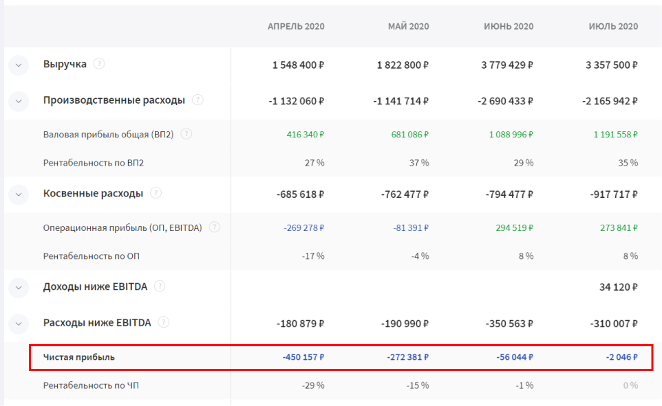 У предприятия могут случаться разовые убытки, но в таком случае его нельзя назвать по-настоящему убыточным. Чтобы «заслужить» этот статус, бизнес должен демонстрировать отрицательную чистую прибыль из месяца в месяц (чего мы никому не желаем).