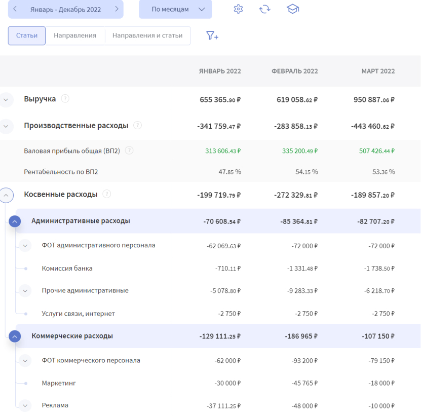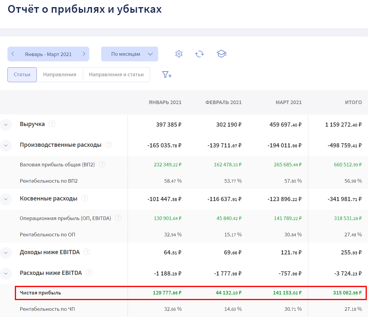 Убыточный бизнес — это тот, у которого сумма чистой прибыли ежемесячно оказывается ниже нуля. Проверить это можно по Отчёту о прибылях и убытках (ОПиУ): если в графе «Чистая прибыль» собственник из месяца в месяц наблюдает отрицательное значение, это говорит об убыточности предприятия.