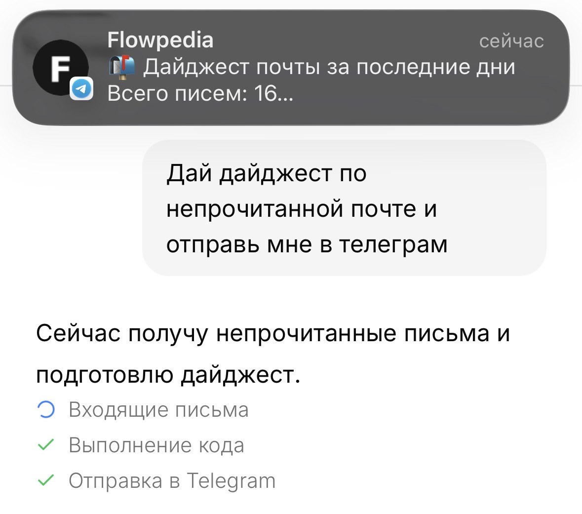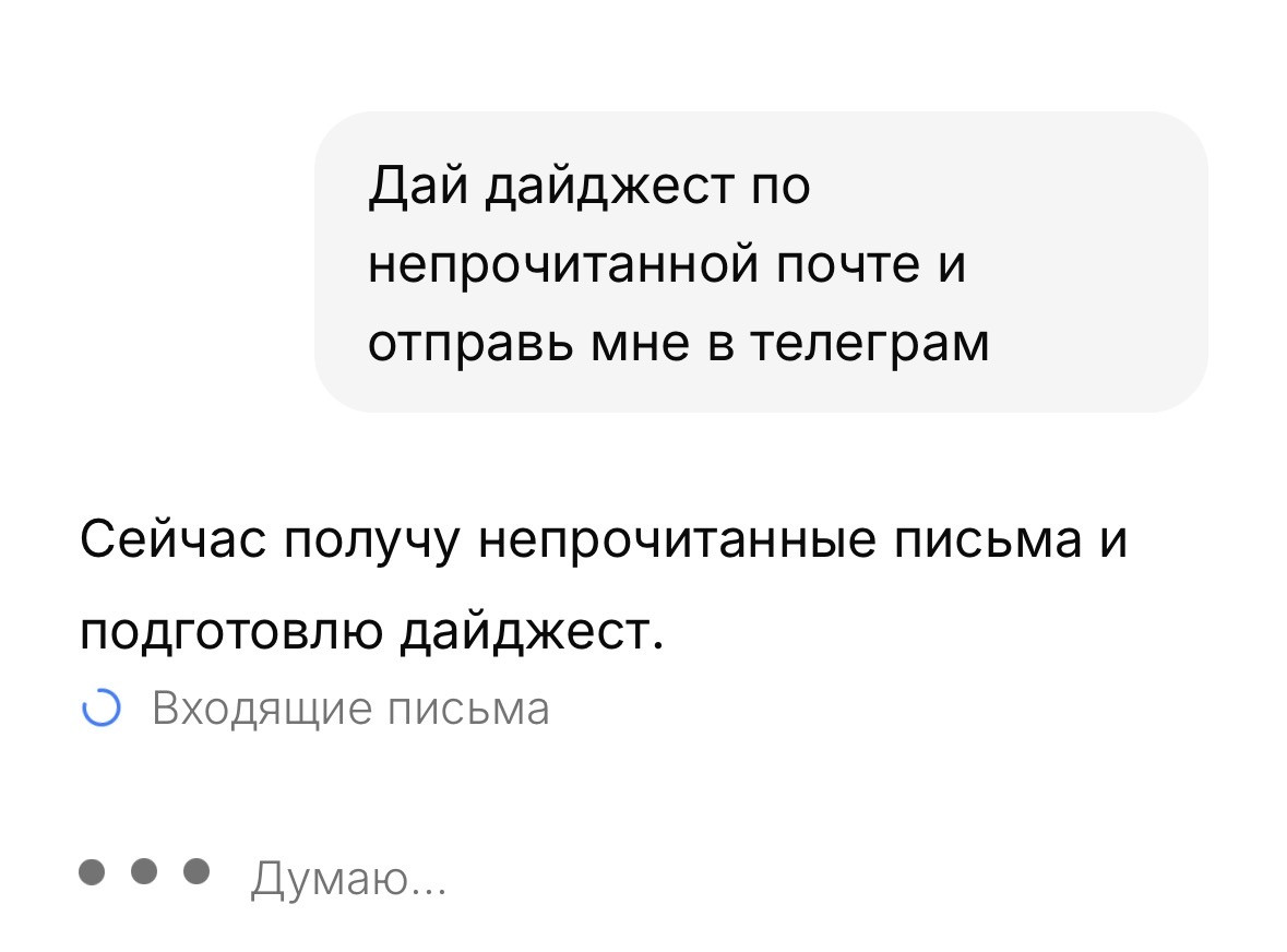 «Каждое утро проверяй непрочитанные письма и присылай дайджест в Телеграм»