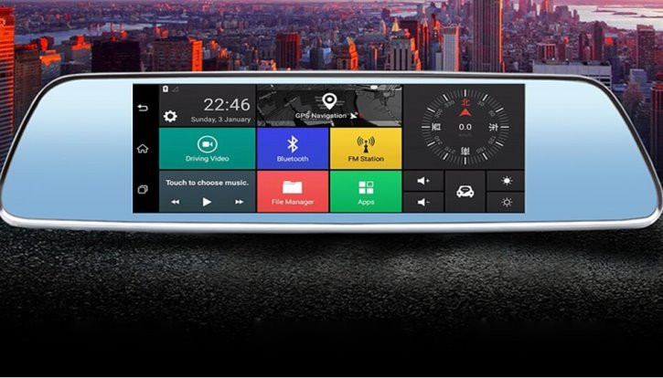 Польза от Фуджикар заключается в экономии места на лобовом стекле. Рекордер использует только пространство заднего зеркала. Никаких присосок — только пара регулируемых резинок для закрепления. Они плотно фиксируют корпус зеркала, а не допуская вибрация пластика. Операционная система Андроид расширяет возможности рекордера.