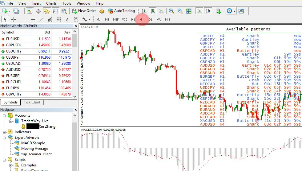 На представленном рисунке отображен график, где таймфрейм обозначен 4Н (красный круг). Данное обозначение говорит о том, что японская свеча отображает динамическую стоимость на протяжении 240 минут (4 часа).