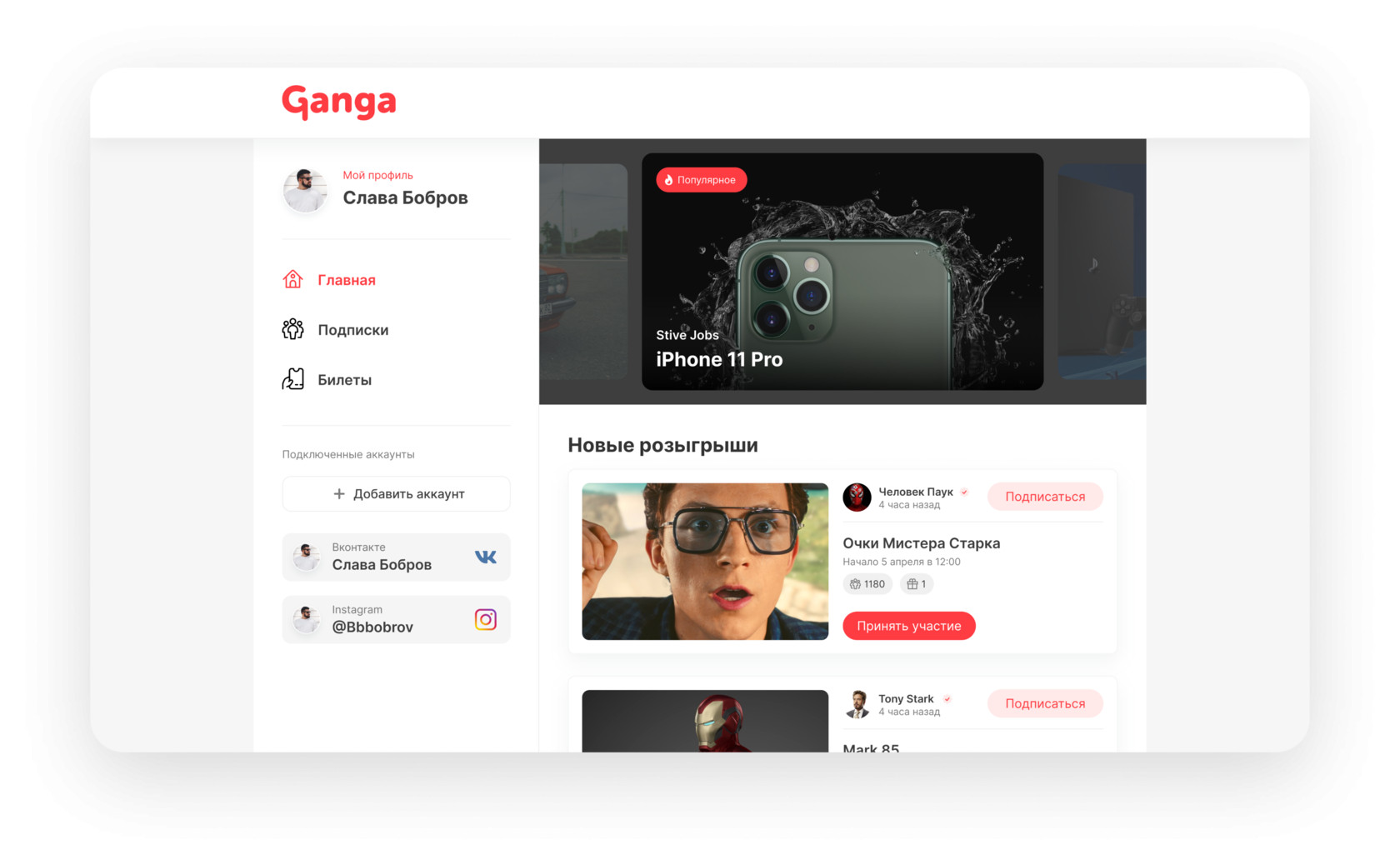 В ленте будут появляться новые розыгрыши, которые мы будем рекомендовать нашим пользователям.