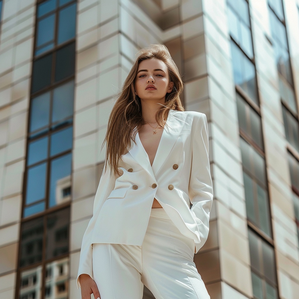 Первое, на что предлагаем обратить внимание при генерации картинки, если вам нужно что-то более жизненное, это сам запрос. Вы можете набрать: «милая свинка в сарафане», но реалистичности от такого изображения не ждите. Скорее всего, это будет забавный арт, скетч или карикатурка — тоже потрясающе, но вашим ожиданиям не соответствует, не так ли? Составляйте РЕАЛЬНЫЙ запрос, например: «Девушка в белом костюме на фоне здания». Для нашей генерации мы выбрали формат «по умолчанию» и стиль Look (подробнее про стили поговорим дальше).