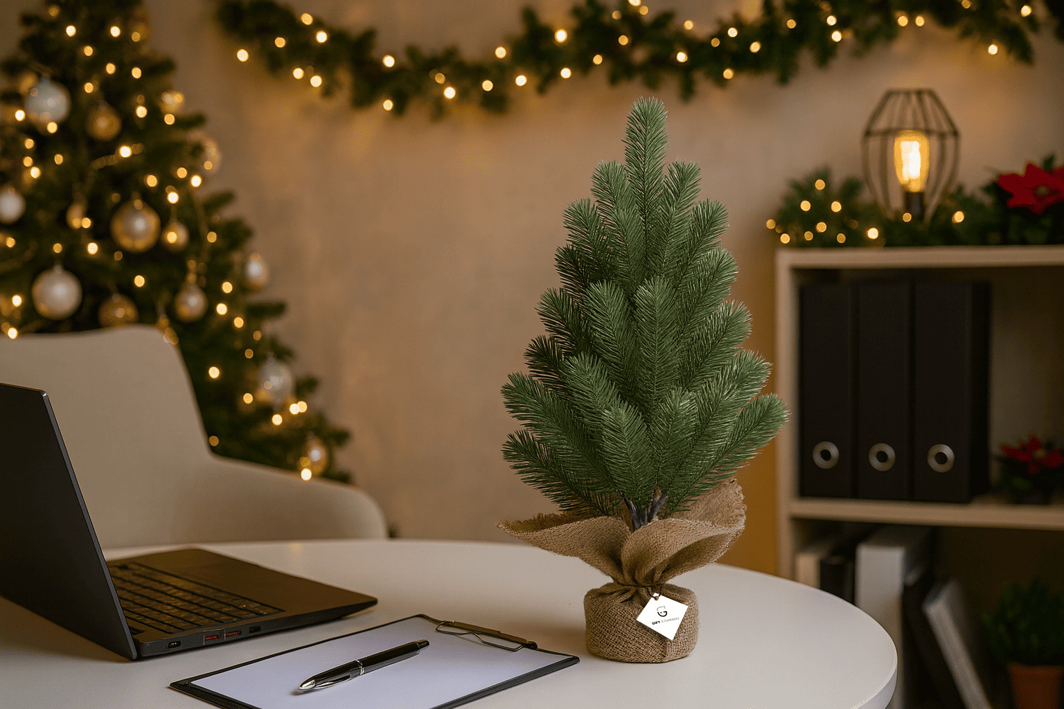 Для офиса это идеальный вариант: создает настроение, не занимает много места. Для дома — решение для тех, кто любит праздник, но не готов мириться с иголками по всему полу.