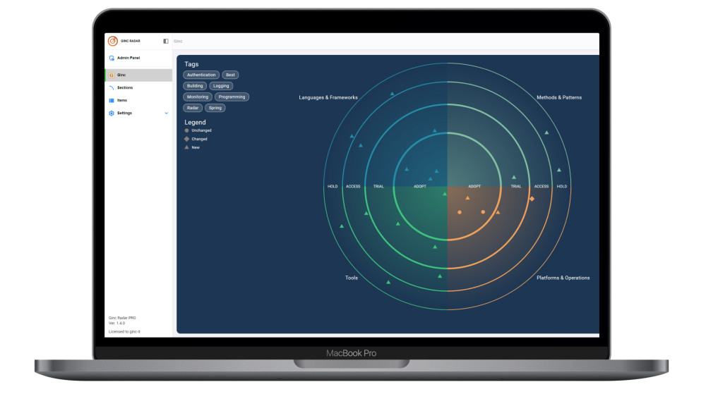 Руководителям, будь то СТО или генеральный директор, Ginc Radar помогает ориентироваться в постоянно меняющемся технологическом ландшафте. Мы упростили сложности технологического портфолио так, что даже ваш бухгалтер сможет понять, что к чему, не говоря уже о технических и нетехнических руководителях.