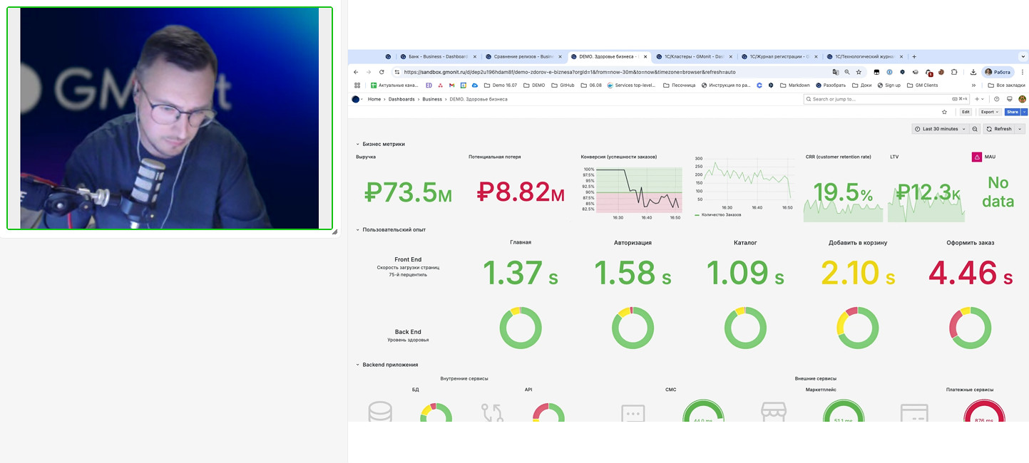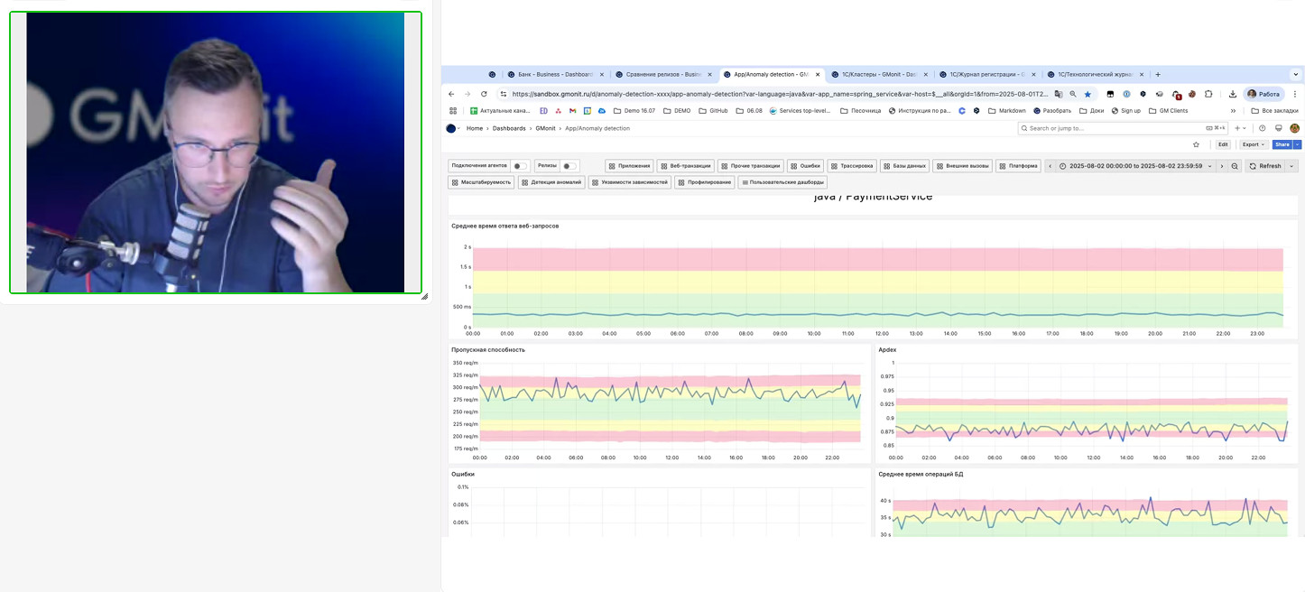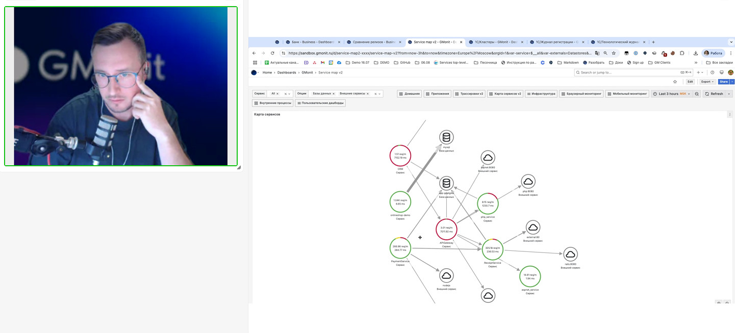 Также специалист продемонстрировал ключевой функционал GMonit, который помогает понимать и предупреждать проблемы, влияющие на бизнес: Инженер поделился планами на H2 2025. Рассказал, как будут развиваться предиктивный анализ аномалий в метриках, мониторинг технологического журнала 1С, упрощенный запрос к данным мониторинга, автоматическое построение сквозного бизнес-процесса и многое другое. В финальной части вебинара состоялась QA-сессия, где участники получили ответы на свои вопросы: Предлагаем к просмотру видеозапись демо: