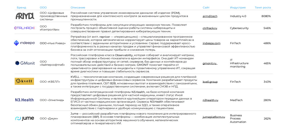 Сегмент IT infrastructure monitoring (мониторинг IT-инфраструктуры) вошел в топ-5 технологических индустрий по количеству быстрорастущих компаний в России — с долей 4,9%. Также аналитики ФРИИ зафиксировали, что большинство быстрорастущих ИТ-компаний (56%) работает на В2В-рынке. Фонд связывает это со спросом рынка на отечественные продукты и увеличением среднего чека в сегменте. 84% респондентов уверены, что смогут поднять выручку в 5 раз в течение трех лет.